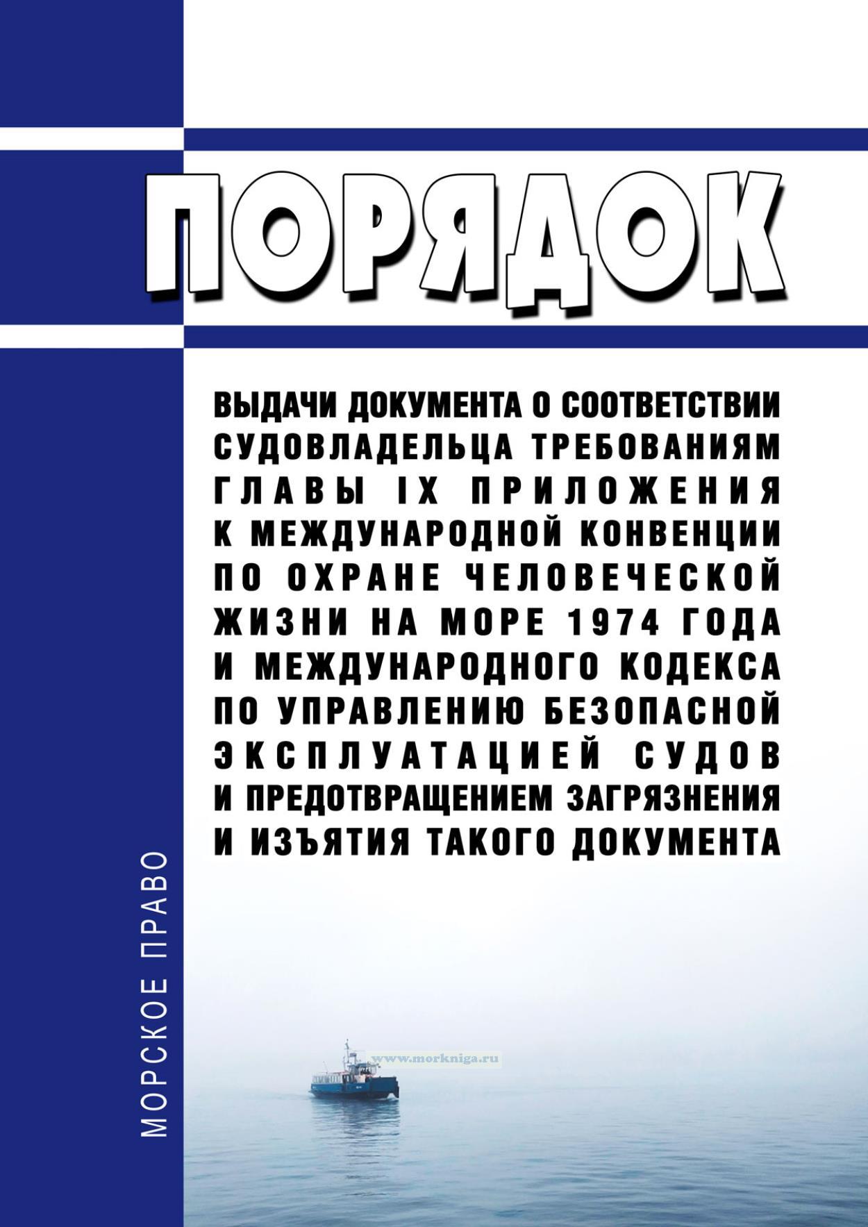 Порядок выдачи документа о соответствии судовладельца требованиям главы IX приложения к Международной конвенции по охране человеческой жизни на море 1974 года и Международного кодекса по управлению безопасной эксплуатацией судов и предотвращением загрязнения и изъятия такого документа устанавливает правила выдачи документа о соответствии судовладельца требованиям главы IX приложения к Международной конвенции по охране человеческой жизни на море 1974 года и Международного кодекса по управлению безопасной эксплуатацией судов и предотвращением загрязнения и изъятия такого документа.
