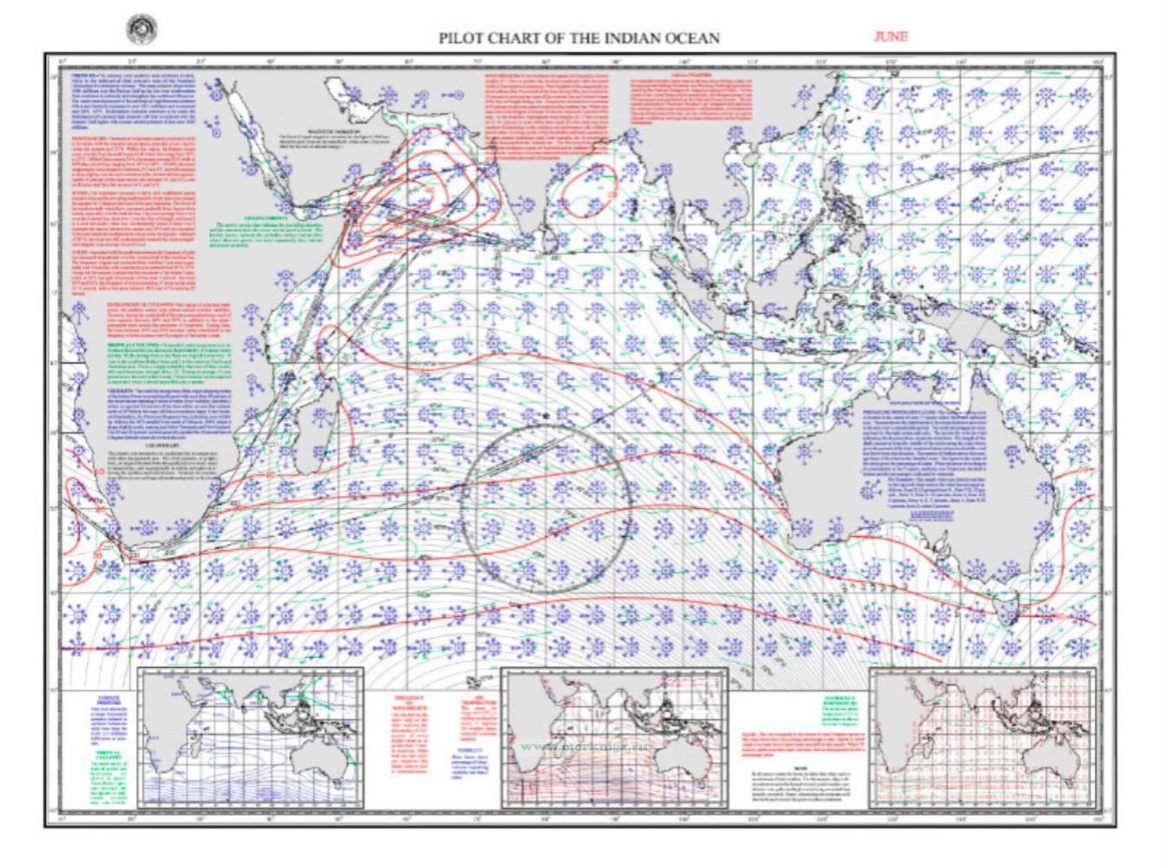 Лоцманские карты отображают средние значения преобладающих ветров и течений, температуры воздуха и моря, высоты волн, границы льда, видимости, атмосферного давления и погодных условий в разное время года. Информация, используемая для составления этих средних значений, была получена из океанографических и метеорологических наблюдений в течение многих десятилетий в конце 18 и 19 веков.