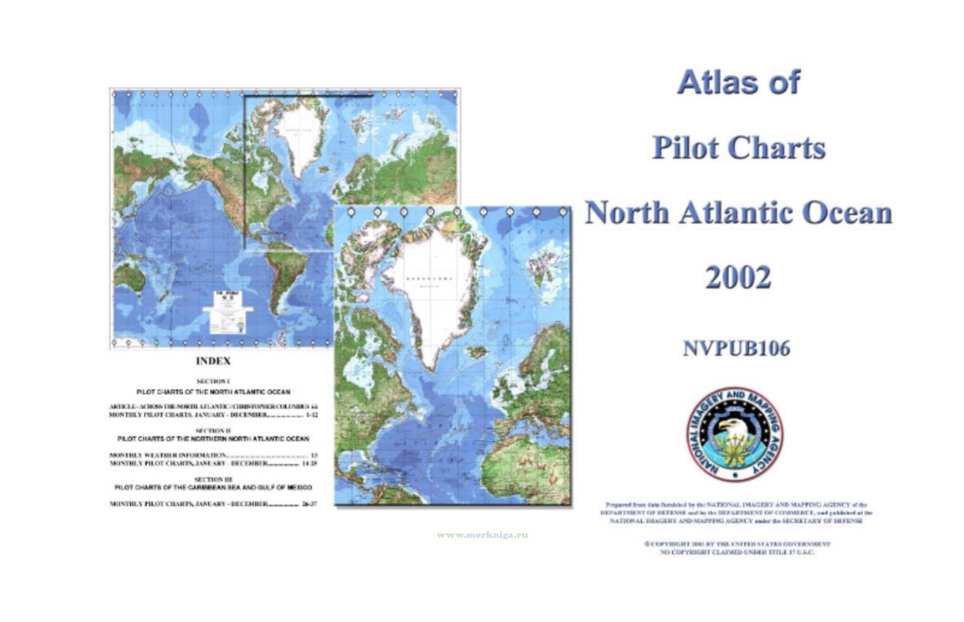Atlas of Pilot Charts covers the North Atlantic Ocean from Guyanais coast in South America, through the Gulf of Mexico, the United States eastern coastline, and the Labrador Sea to the Davis Strait, including Greenland and Iceland, and from Sierra Leone to the northeast coast of Norway, including the United Kingdom and the Baltic Sea. It also covers the Caribbean Sea and the Gulf of Mexico. There is also a passage entitled, Geodesy and Datums for the Navigator.