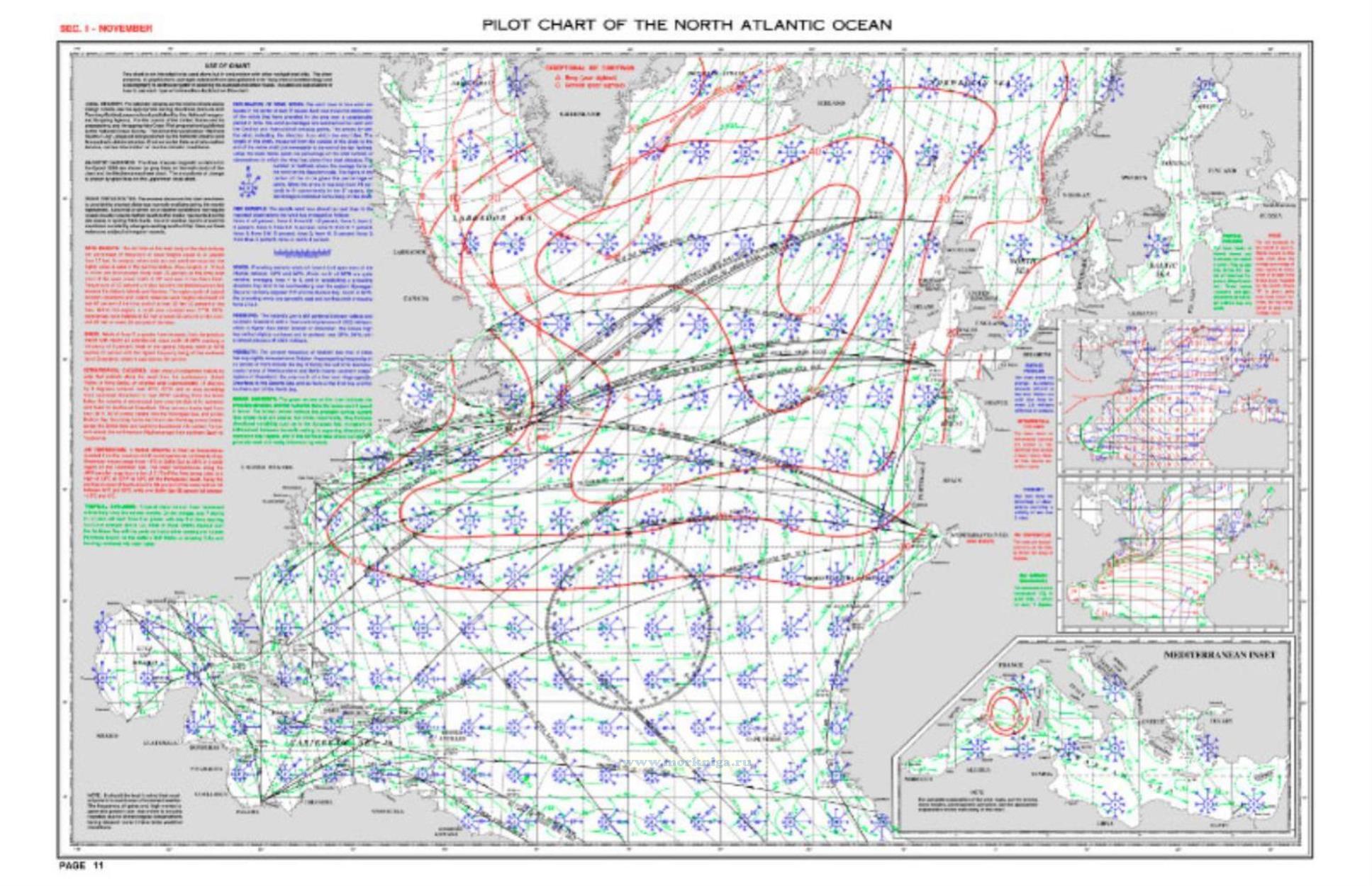 Карты предназначены для помощи штурману в выборе самых быстрых и безопасных маршрутов с учетом ожидаемых погодных условий и состояния океана.