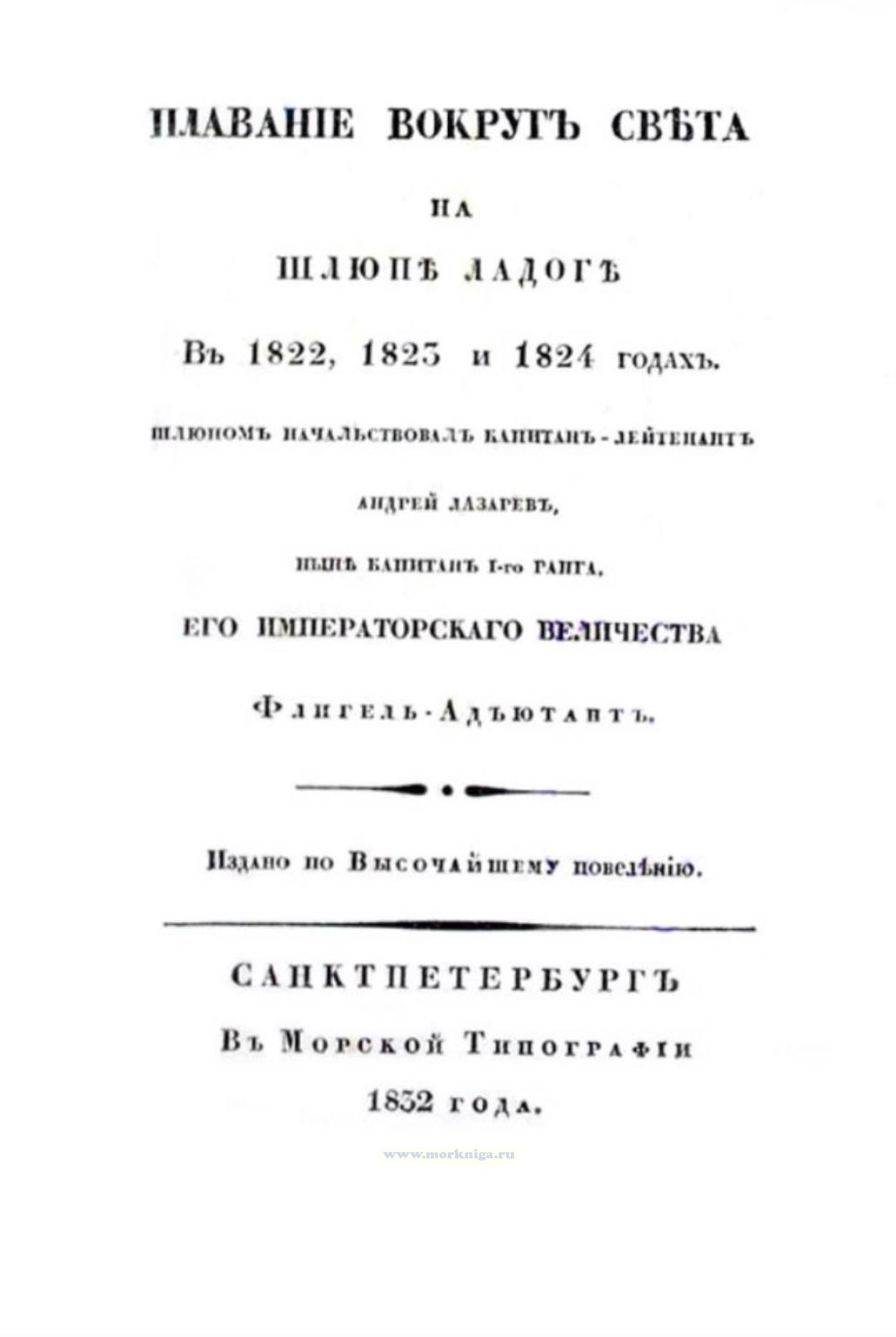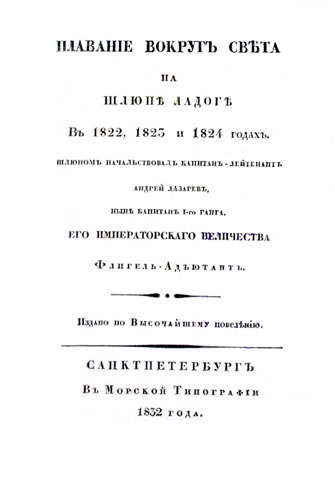 По окончании экспедиции, отправленной под моим начальством для обозрения берегов Новой Земли, в 1822 году я был снова приглашен к принятию препоручения в отряде, назначенном в колонии Императорской Российской Американской компании Брату моему М. П. вверен был 44-х пушечный Фрегат Крейсер, а мне 20-и пушечный шлюп Ладога, построенный на Лодейнопольской верфи, корабельным мастером Курепановым. Длина Шлюпа по гондеку 120, ширина без обшивки 30, глубина интрюма 15.Футов 4 дюйма.