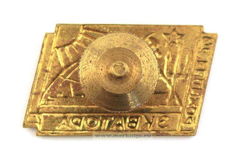 Один из первых знаков "За переход экватора" появился в начале 60-х гг. Он вручался личному составу экспедиционных океанографических судов Тихоокеанского флота. Знак представляет собой Военно-морской флаг, выполненный в виде параллелограмма, в центре которого на фоне земного шара изображен силуэт корабля. Справа в верхнем углу - палящее солнце, слева - пятиконечная красная звезда, серп и молот, под которыми изображен трезубец. Слева на черной вертикальной и внизу на черной горизонтальной лентах выбита надпись «За переход экватора».