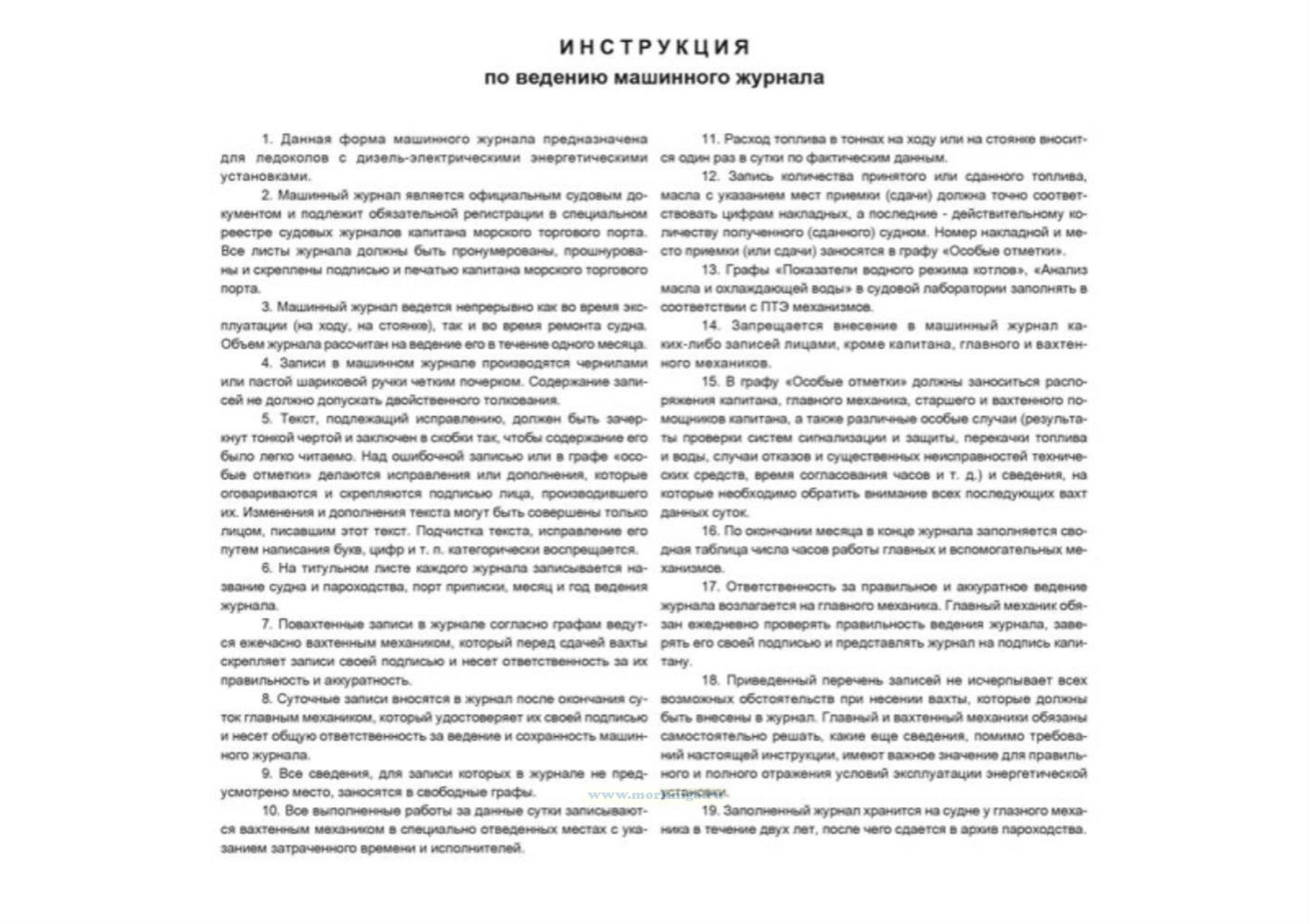 Данная форма машинного журнала предназначена для ледоколов с дизель-электрическими энергетическими установками.