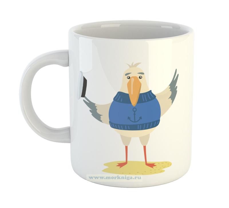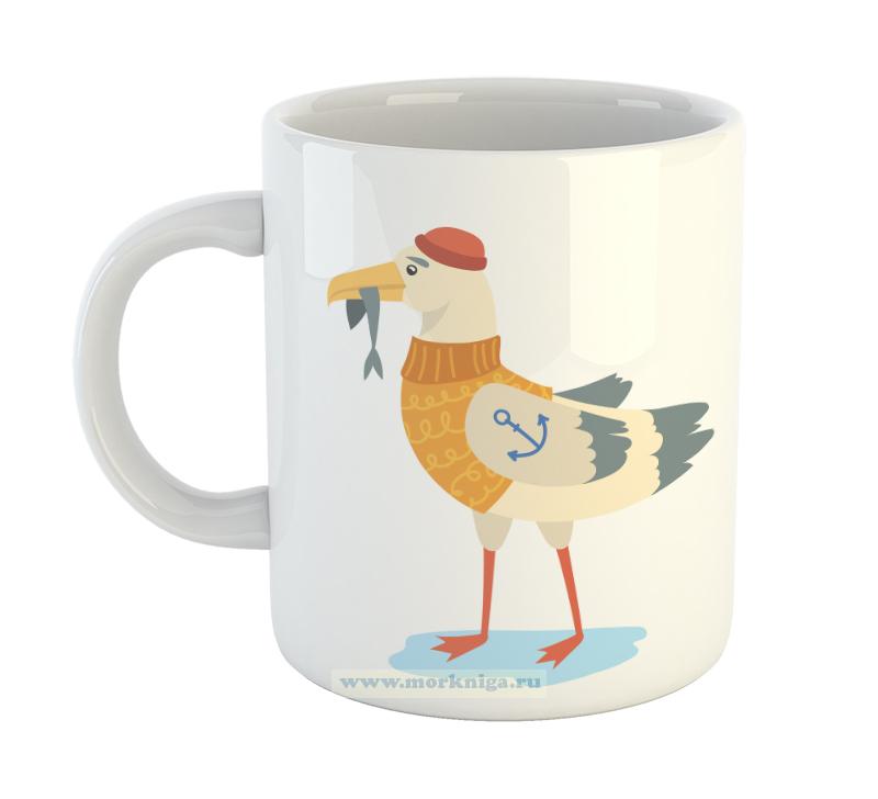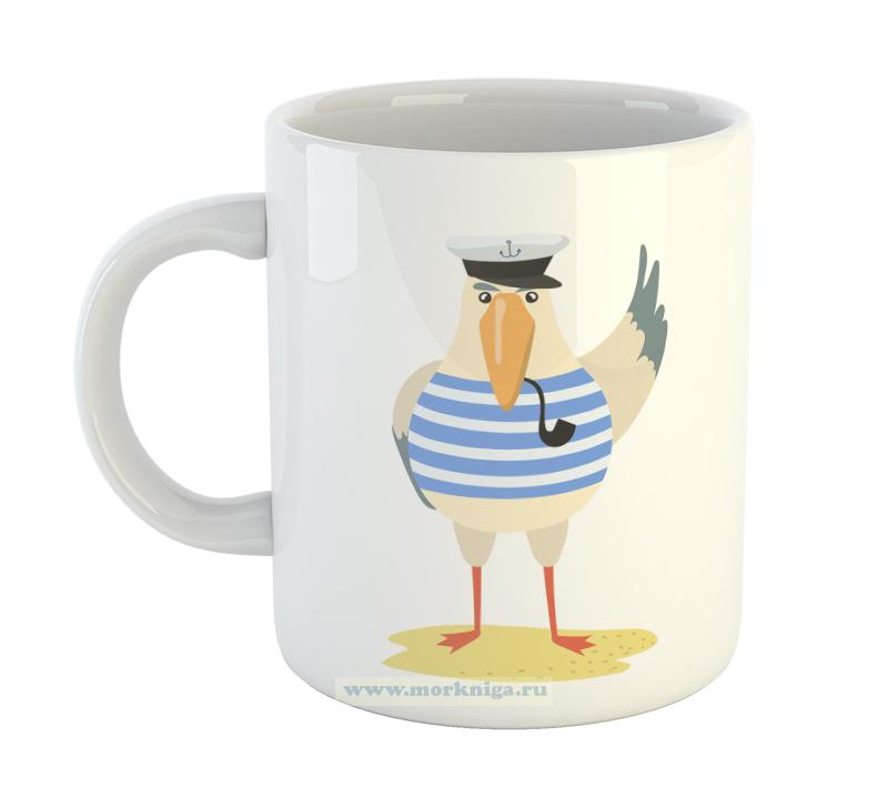 Кружка с изображением чайки-моряка порадует вашего малыша и станет отличным подарком к тематическому празднику.