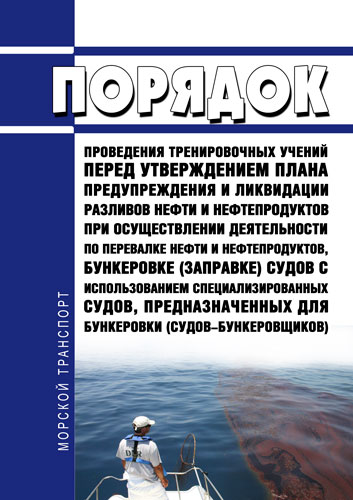 Порядок проведения тренировочных учений перед утверждением плана предупреждения и ликвидации разливов нефти и нефтепродуктов при осуществлении деятельности по перевалке нефти и нефтепродуктов, бункеровке (заправке) судов с использованием специализированных судов, предназначенных для бункеровки (судов-бункеровщиков) регламентирует процедуру проведения тренировочных учений в целях предупреждения и ликвидации разливов нефти и нефтепродуктов в морской среде.