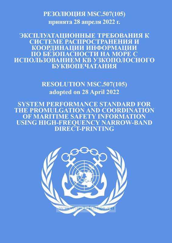 Резолюция MSC.507(105) "Эксплуатационные требования к системе распространения и координации информации по безопасности на море с использованием КВ узкополосного буквопечатания" включена в Сборник № 70 резолюций ИМО/Collection No.70 of IMO Resolutions.