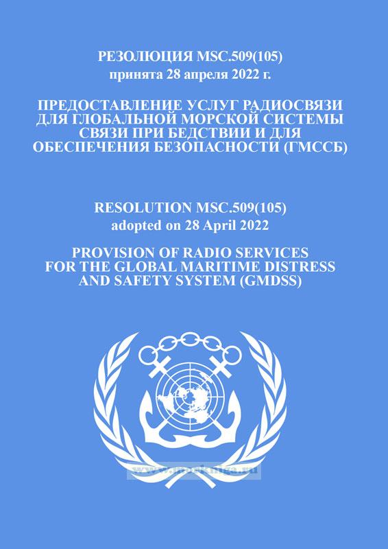 Резолюция MSC.509(105) "Предоставление услуг радиосвязи для глобальной морской системы связи при бедствии и для обеспечения безопасности (ГМССБ)" включена в Сборник № 70 резолюций ИМО/Collection No.70 of IMO Resolutions.