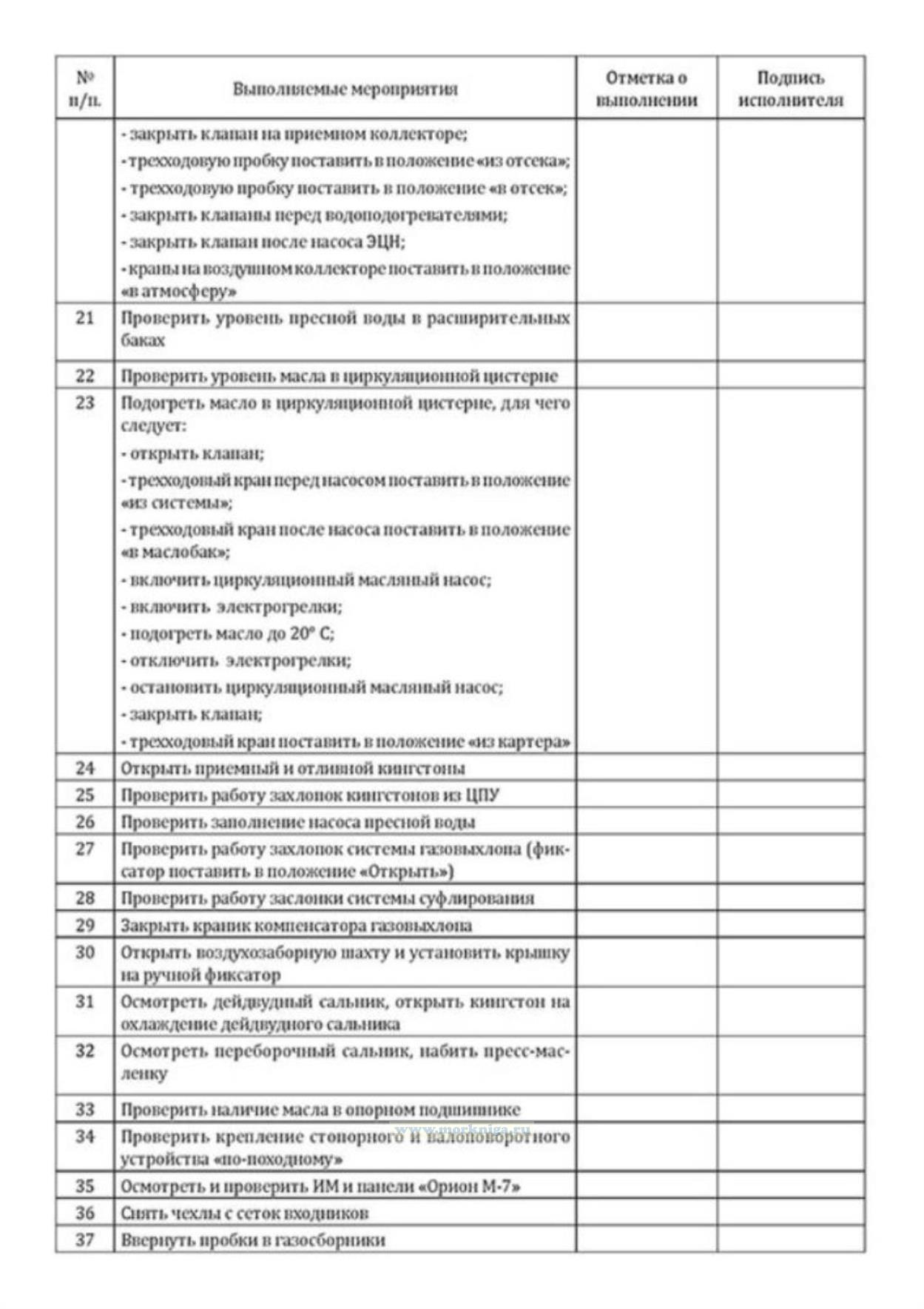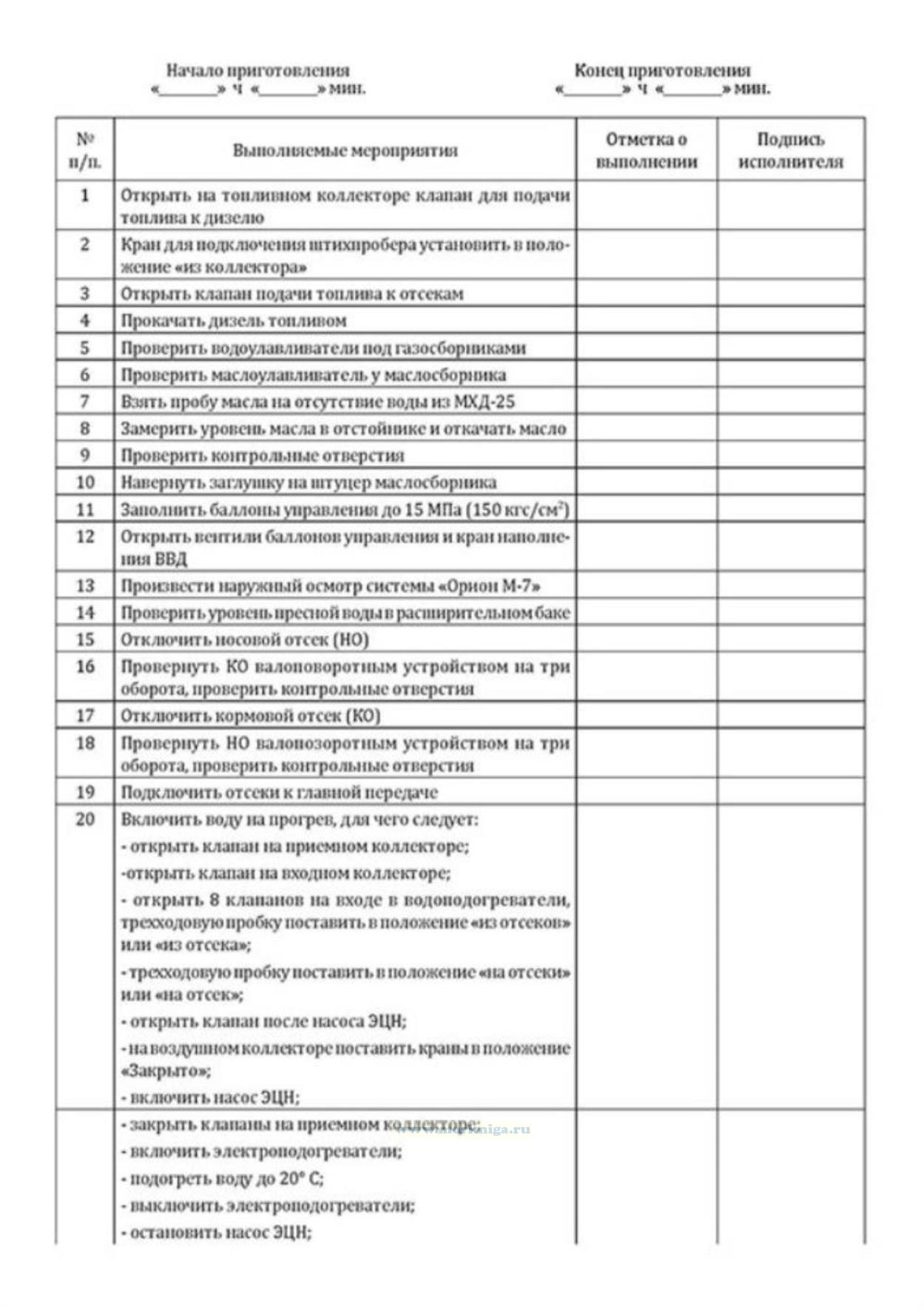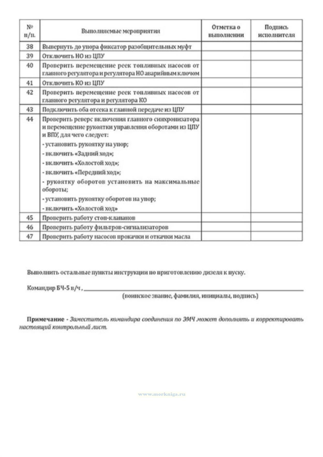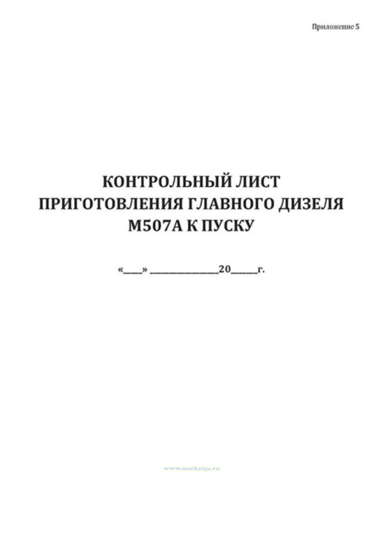 Форма Контрольного листа приготовления главного дизеля М507А к пуску соответствует Приложению 4 к ПЭД-НК-2009 "Правила эксплуатации дизелей надводных кораблей ВМФ"