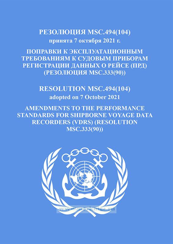 Резолюция MSC.494(104) "Поправки к эксплуатационным требованиям к судовым приборам регистрации данных о рейсе (ПРД) (резолюция MSC.333(90))" включена в Сборник № 69 резолюций ИМО. Collection No.69 of IMO Resolutions.