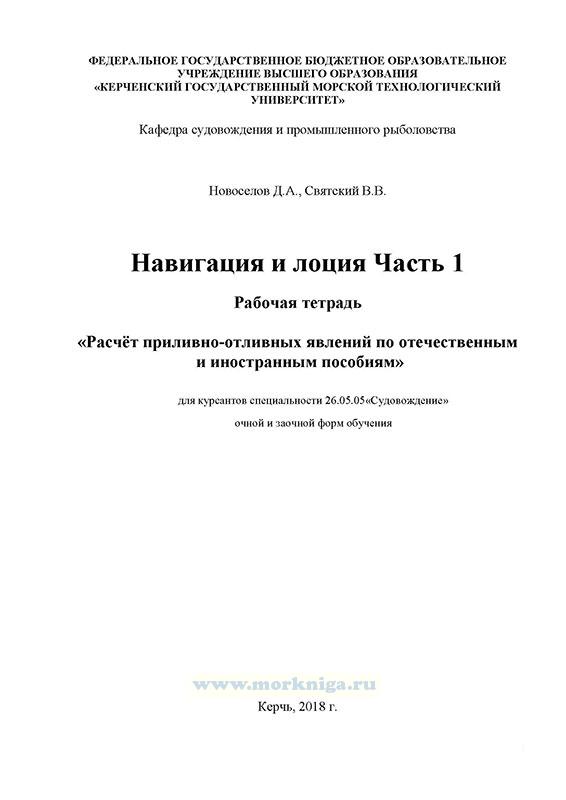 Рабочая тетрадь «Расчет приливно-отливных явлений по отечественным и иностранным пособиям» предназначена для самостоятельной проработки курсантами такого важного умения, как расчет приливно-отливных явлений по отечественным и иностранным пособиям и является составной частью учебно-методического комплекса курса Навигация и лоция.