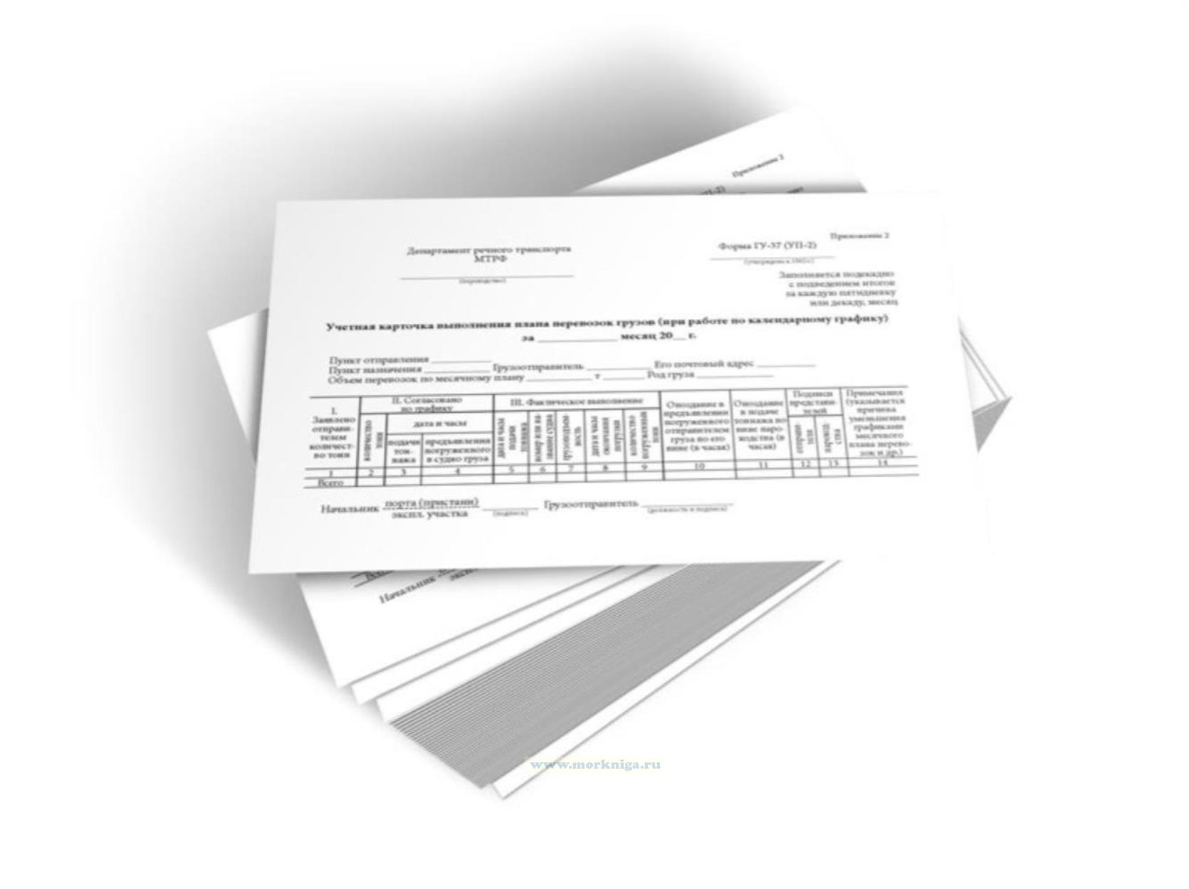 Форма Учетной карточки выполнения плана перевозок грузов (при работе по календарному графику) ГУ-37 (УП-2) соответствует Приложению 2 к Правилам перевозок грузов. Часть 1 утв. Минтрансом., которые утратили силу.