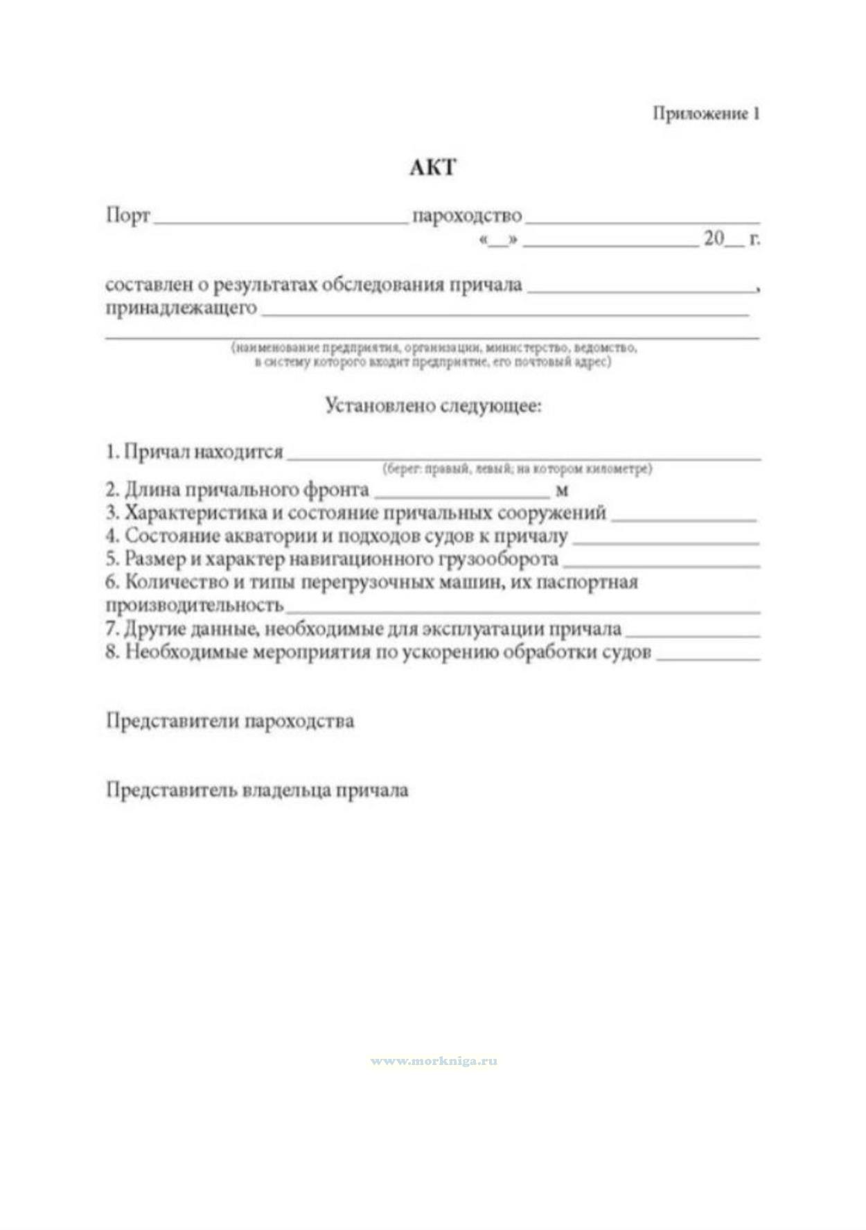 Форма Акта о результатах обследования причала соответствует Приложению 14.1 к Правилам перевозок грузов. Часть 1 утв. Минтрансом., которые утратили силу.