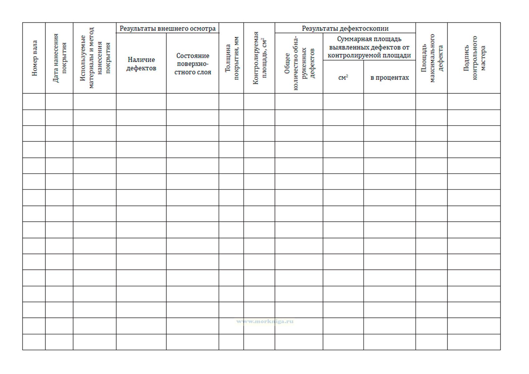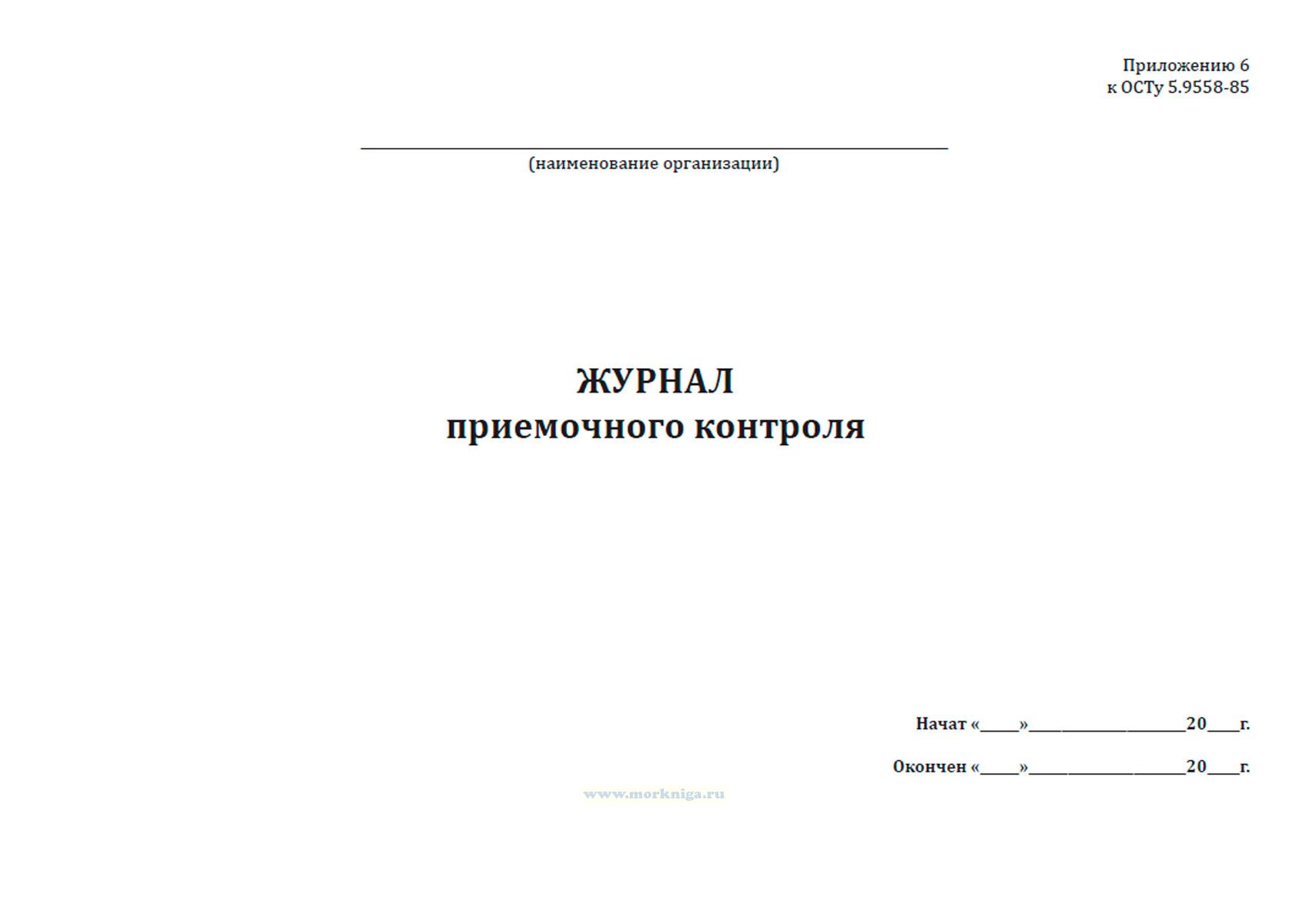 Форма Журнала приемочного контроля соответствует Приложению 6 к ОСТу 5.9558-85 "Покрытия защитные из стеклопластика и дейдвудных валов. Типовой технологический процесс нанесения".