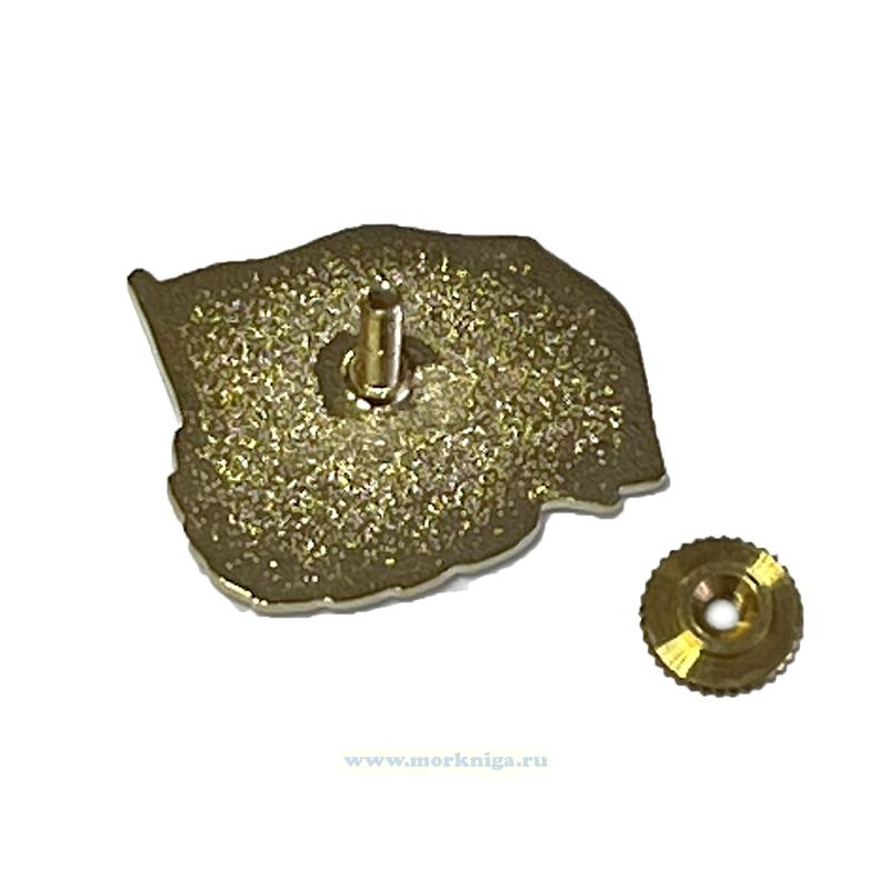 Знак изготовлен из латуни, выпущен в виде развивающегося пограничного флага с изображением корабля. Нижняя часть декорирована лентой красного цвета с надписью «За дальний поход». Нижний правый угол украшен лавровым венком.