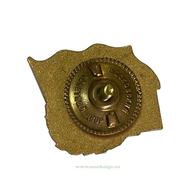Снизу и справа знак обрамлен золотой лавровой ветвью, на которой имеется виньетка для гравировки даты похода.