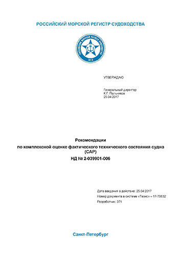 НД № 2-039901-006 "Рекомендации по комплексной оценке фактического технического состояния судна (CAP)" утв. Генеральным директором К.Г. Пальниковым 25.04.2017.