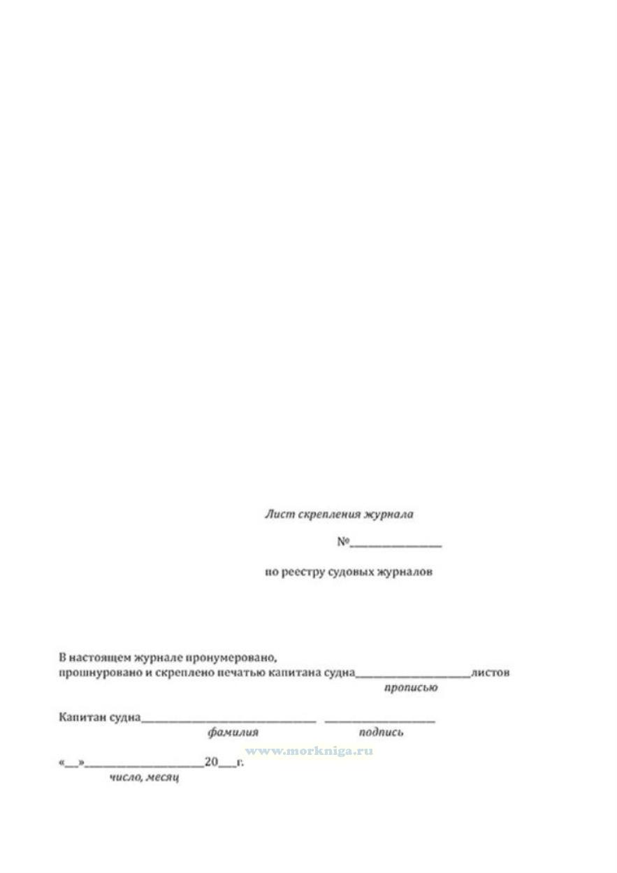Все листы в журнале, ведение которого осуществляется на бумажном носителе, должны быть пронумерованы, прошнурованы и скреплены на последней странице судовой печатью.
