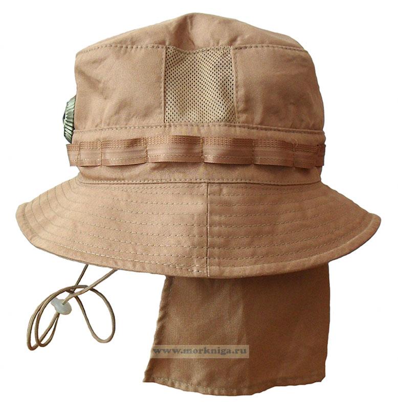 На панаме расположена кокарда защитного цвета со звездой, шнурок на подбородок с удобной регулировкой, а также есть дополнительный отворот для защиты шеи от солнца.