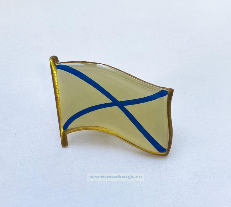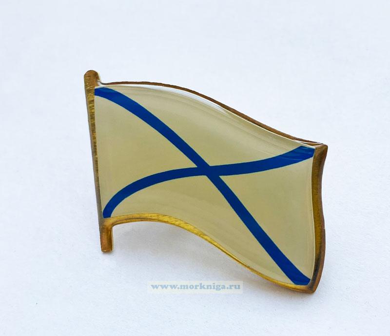 Значок "Андреевский флаг. ВМФ России". Отличный подарок моряку на день Морской пехоты, день рождения, 23 февраля. Достойный экземпляр для коллекционеров значков. Изображение флага покрыто прозрачной смолой