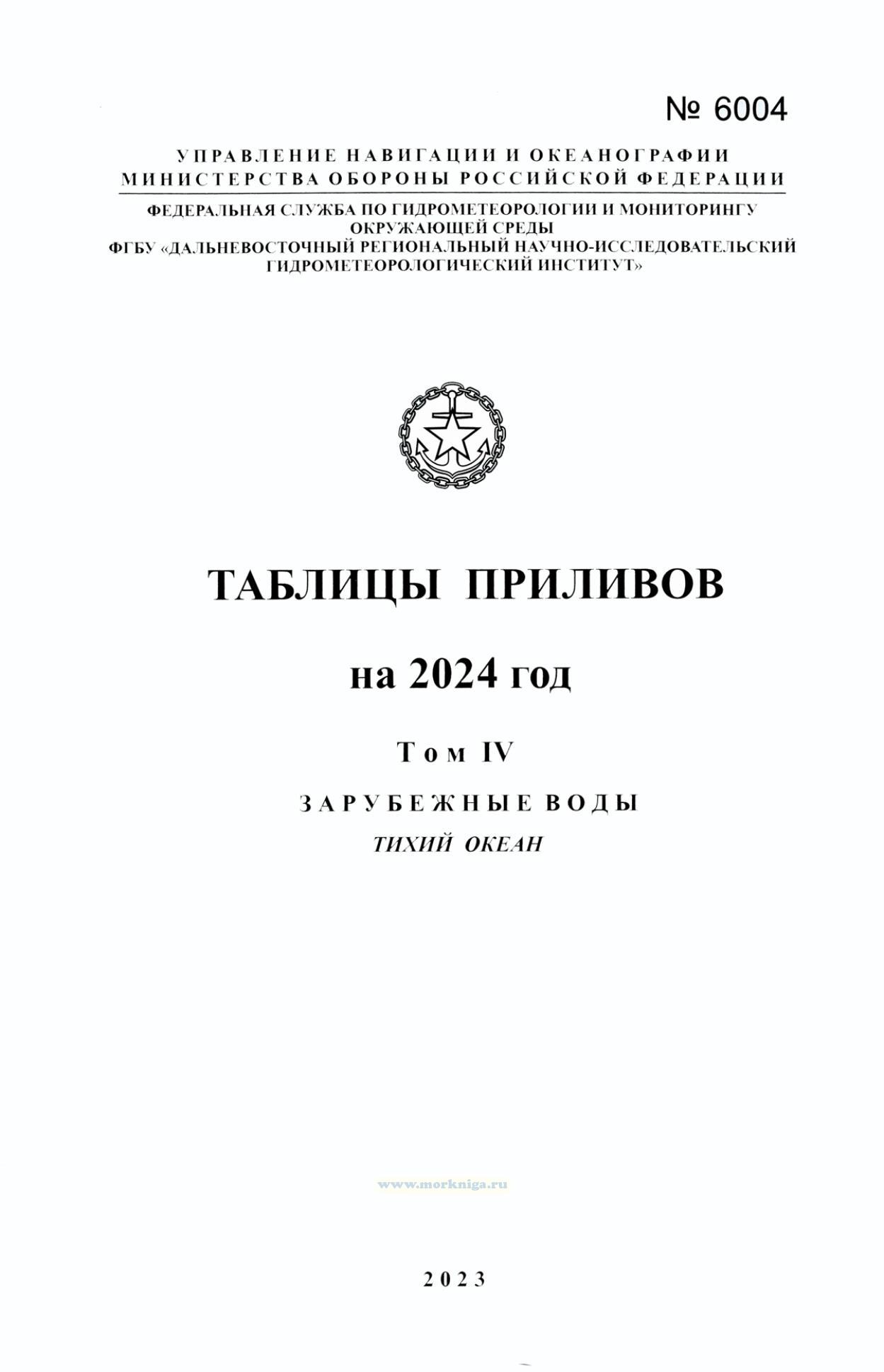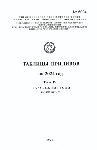 Таблицы приливов. Адм. № 6004. Том 4. Зарубежные воды. Тихий океан. На 2023 год (3520 руб.)