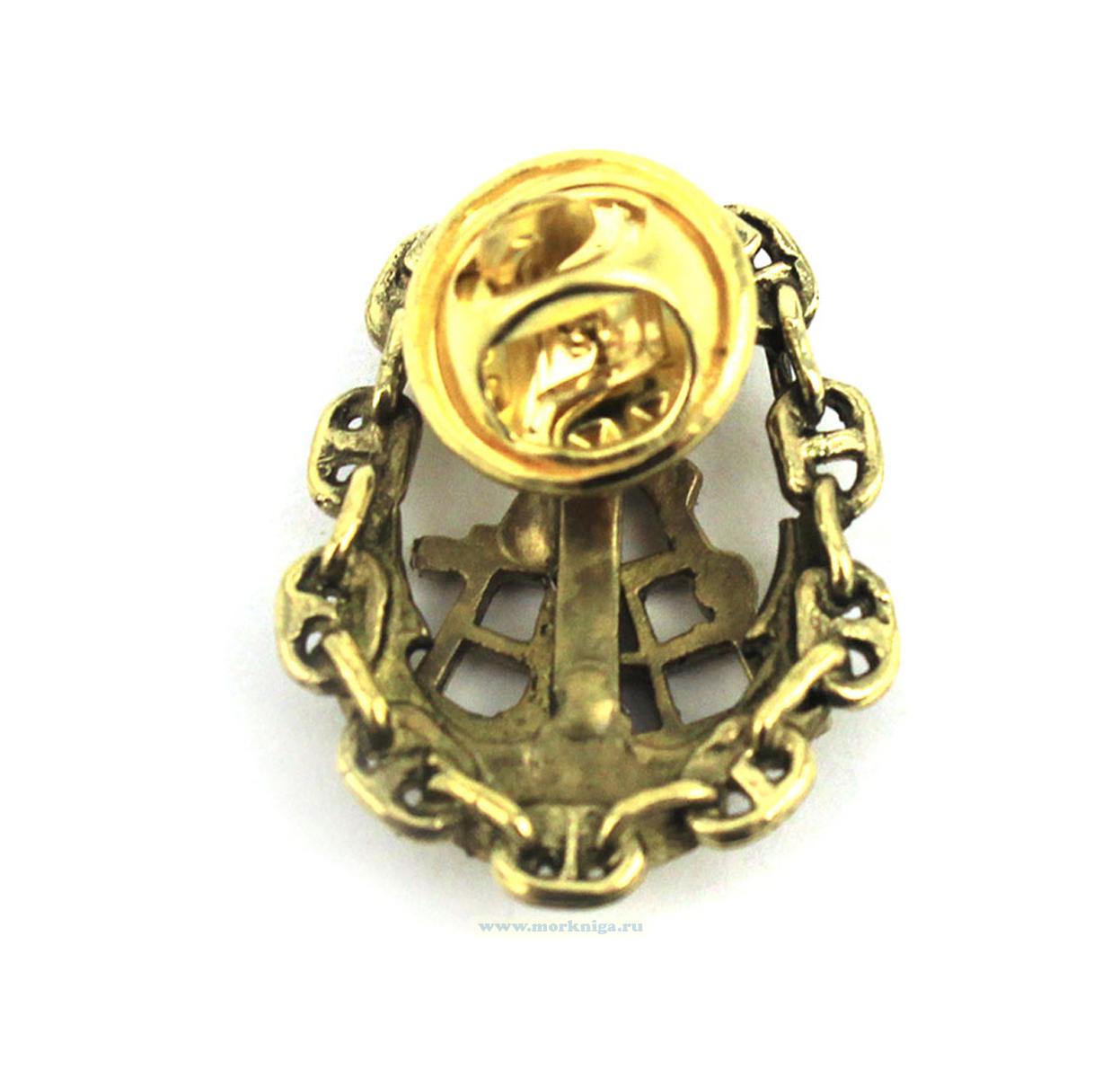 Нагрудный знак "Капитан дальнего плавания" представляет собой металлический выпуклый якорь в овальном венчике из якорь-цепи с распорками.