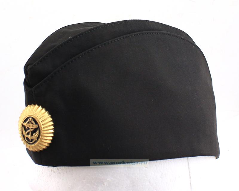 Пилотка полиэфирно-вискозная без кантов (тип Б) черного цвета с кокардой золотистого цвета с якорем
