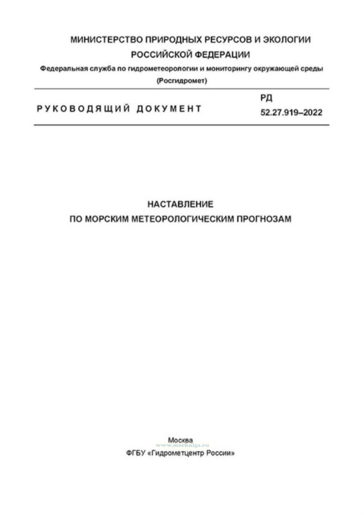 РД 52.27.919-2022 "Наставление по морским метеорологическим прогнозам" утв. приказом Росгидромета от 04.04.2022 № 119.
