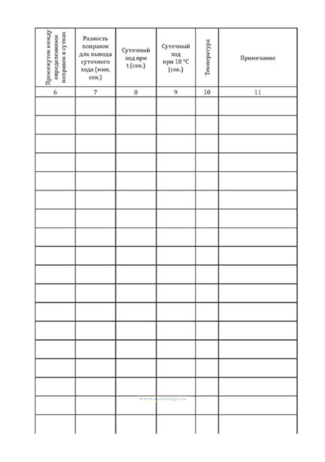 Графы Журнала хронометров и часов (Форма Ш-10М):