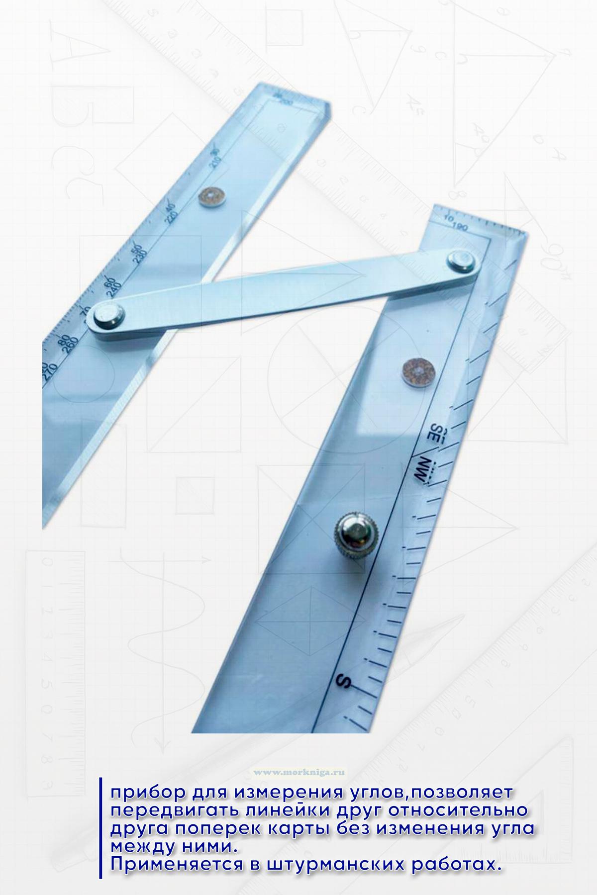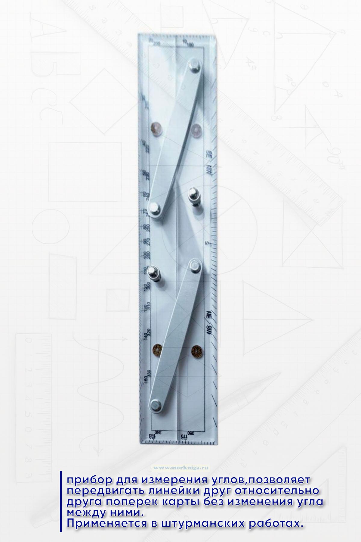 Пантографная линейка, состоит из двух параллельных линеек, соединенных рычагами с гониометром. Имеется градусная и сантиметровая градуировка. Прибор для измерения углов.