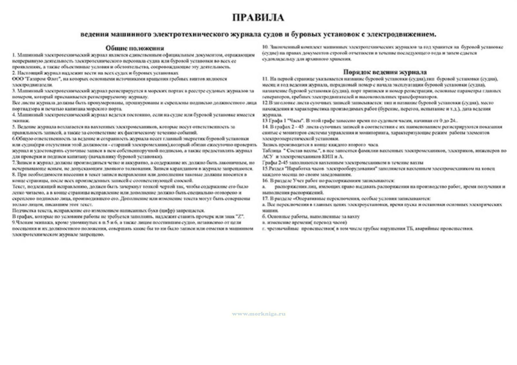 Настоящий журнал надлежит вести на всех судах и буровых установках ООО "Газпром Флот", на которых основными источниками вращения гребных винтов являются электродвигатели.