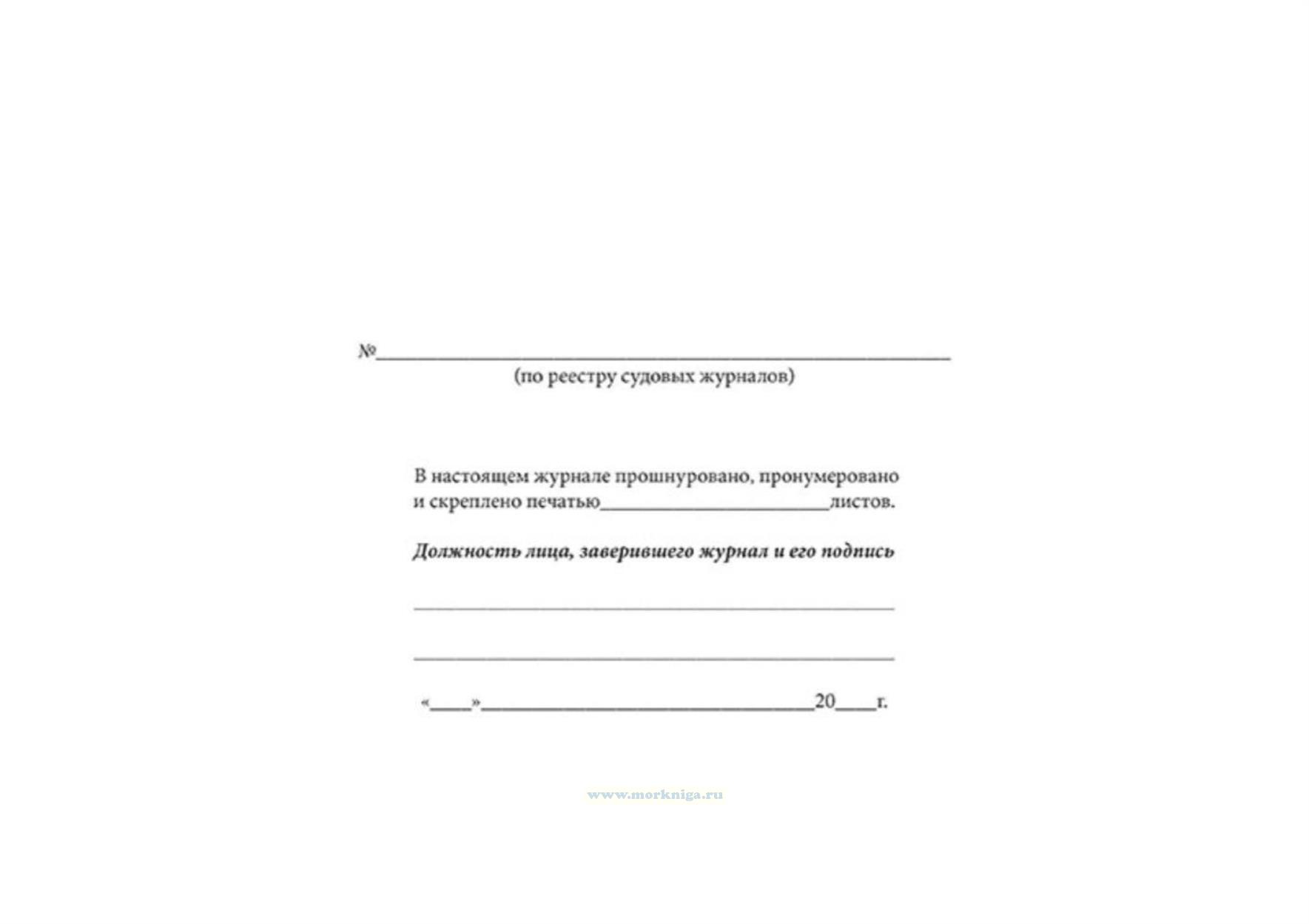 Все листы журнала должны быть пронумерованы, прошнурованы и скреплены подписью должностного лица портнадзора и печатью капитана морского порта.