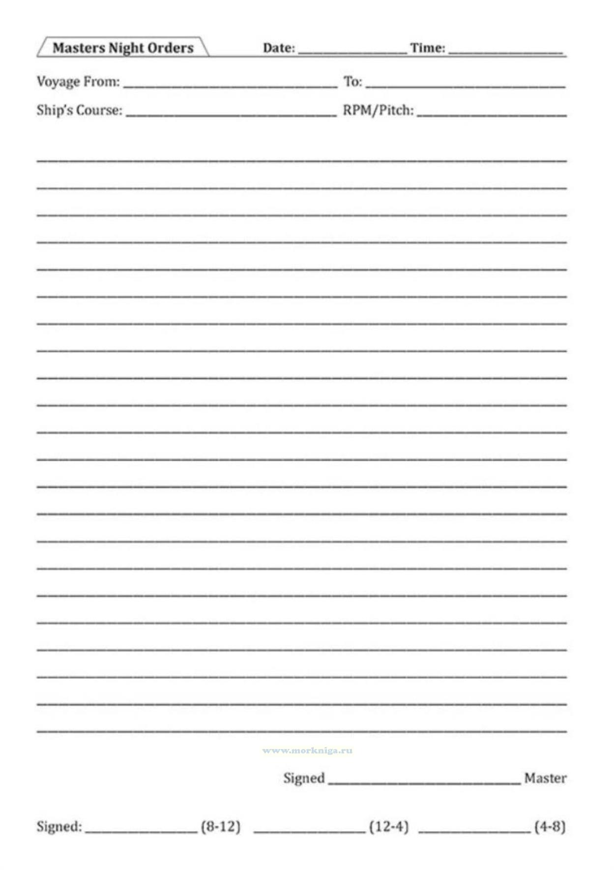 Журнал на английском языке. This is a night order logbook that can be used to record instructions overnight bridge officers.
