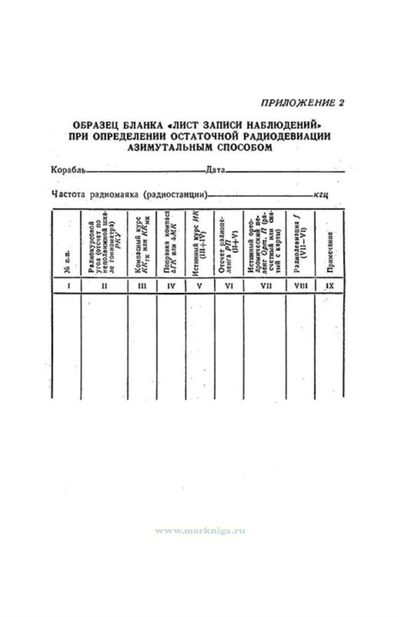 Форма бланка "Лист записи наблюдений при определении остаточной радиодевиации азимутальным способом" соответствует Приложению 2 к Правилам штурманской службы №32. Компенсация и определение радиодевиации, которые утратили силу.