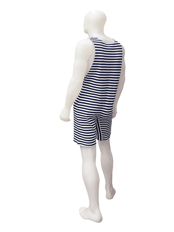 Тельняшка-комбинезон выглядит как купальный костюм в стиле ретро. Будет отлично смотреться на тематической вечеринке в сочетании с пышными усами. Размер: 52/182 - 54/182 (XXL)Материал: 100 % хлопок (интерлок)Цвет: синий Размер упаковки: 20 х 20 х 2 см