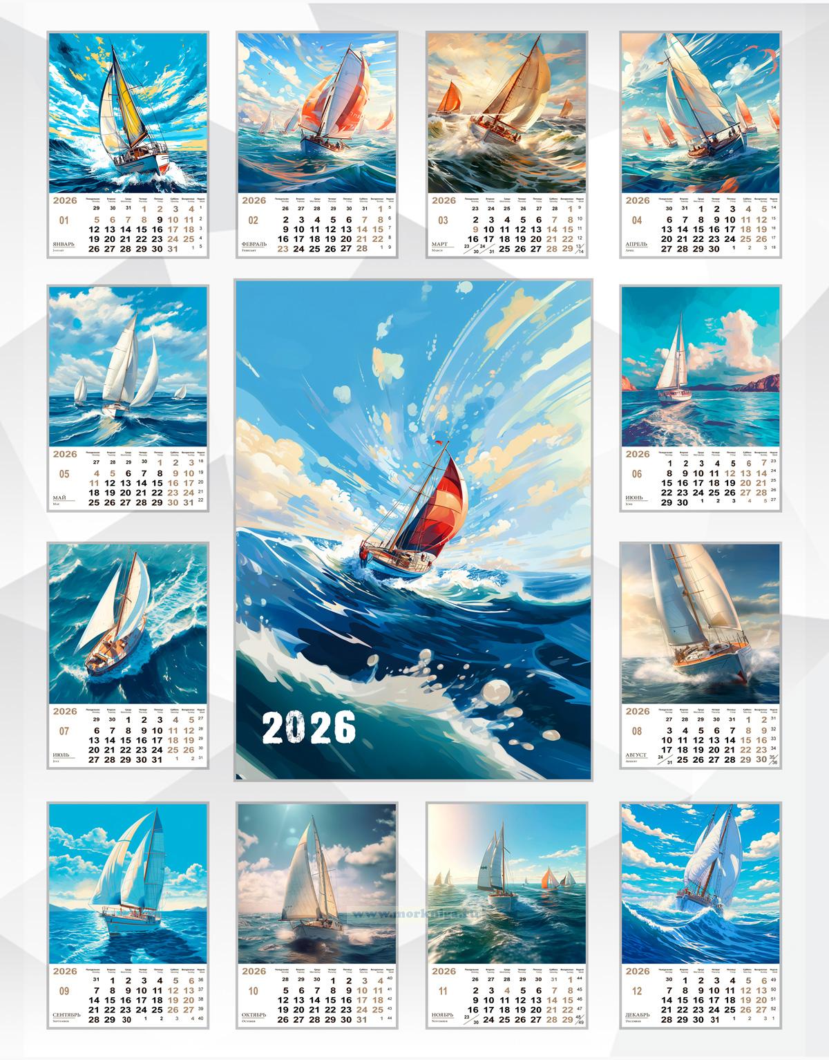 Календарь содержит 12 изображений соревнований по Парусному спорту .