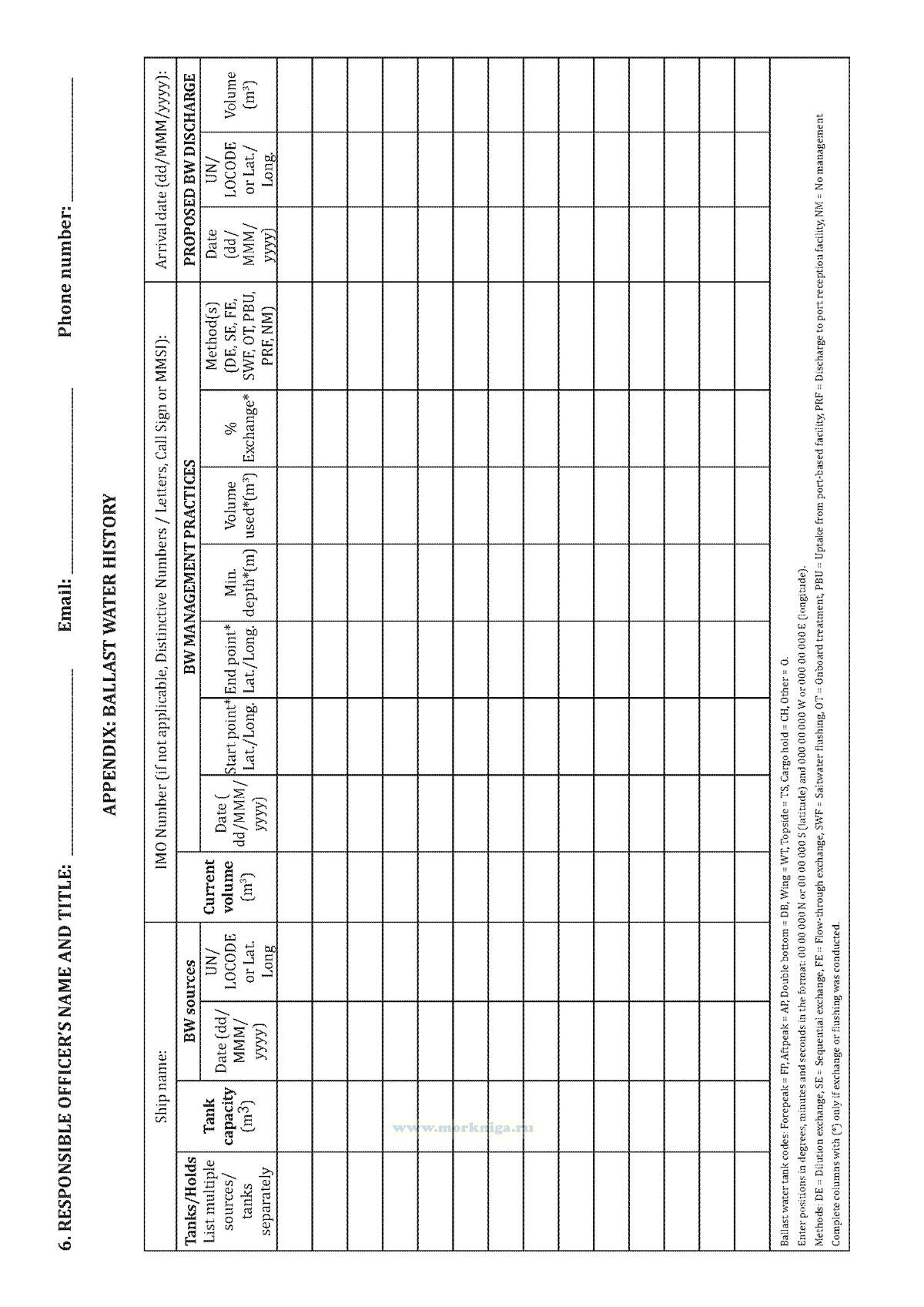 Ballast water record book is compliant with BWM.2/Circ.80/Rev.1 24 October 2024 International Convention for the Control and Management of Ships' Ballast Water and Sediments.