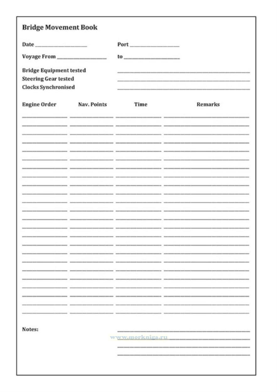 Книга на английском языке. 72-page modern style bridge movement (or bell) book. Handy-sized logbook for recording bridge movements. Bridge Movement Book has columns: Engine Order Nav. Points Time Remarks