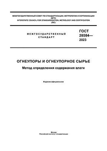 Приказом Федерального агентства по техническому регулированию и метрологии от 10 июля 2023 г. № 502-ст межгосударственный стандарт ГОСТ 28584-2023 "Огнеупоры и огнеупорное сырье. Метод определения содержания влаги" введен в действие в качестве национального стандарта Российской Федерации с 1 января 2024 г.