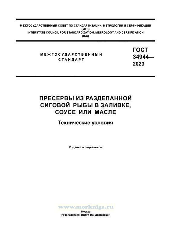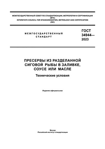 Приказом Федерального агентства по техническому регулированию и метрологии от 21 июня 2023 г. № 422-ст межгосударственный стандарт ГОСТ 34944-2023 "Пресервы из разделанной сиговой рыбы в заливке, соусе или масле" введен в действие в качестве национального стандарта Российской Федерации с 1 мая 2024 г. с правом досрочного применения.