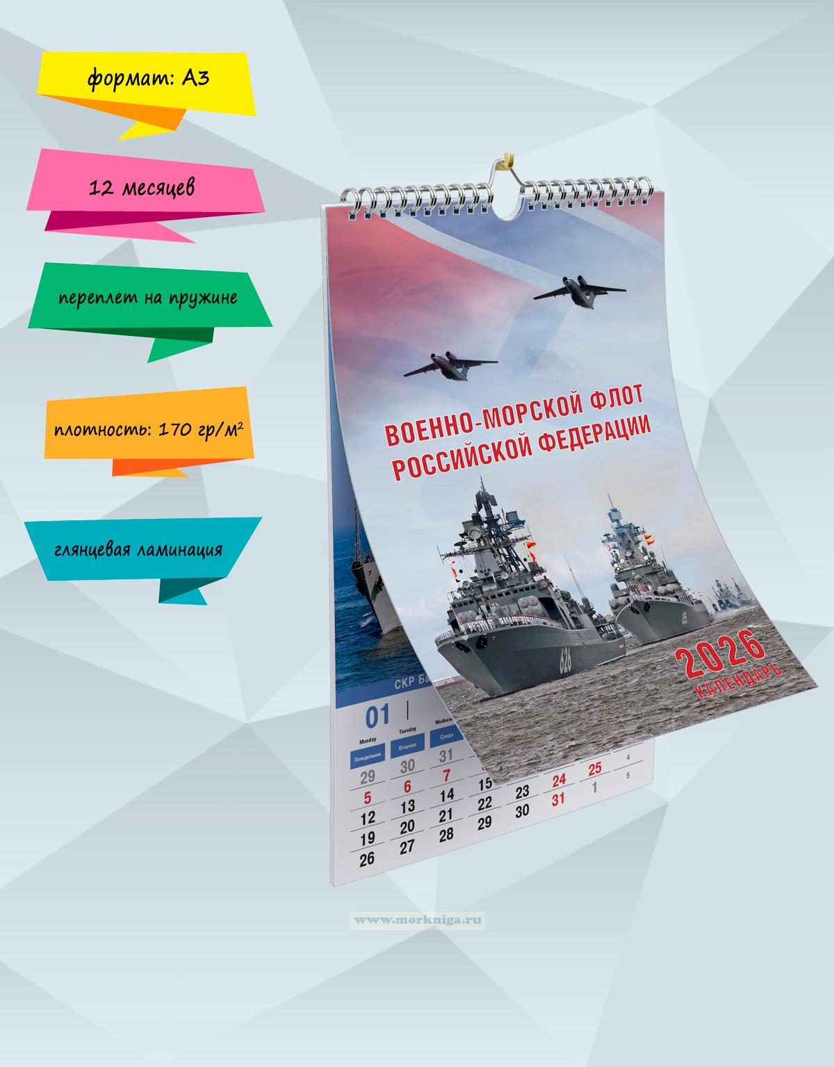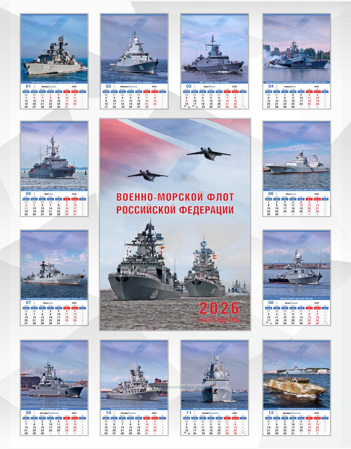 Календарь содержит 12 изображений представителей Военно-морского флота Российской Федерации: