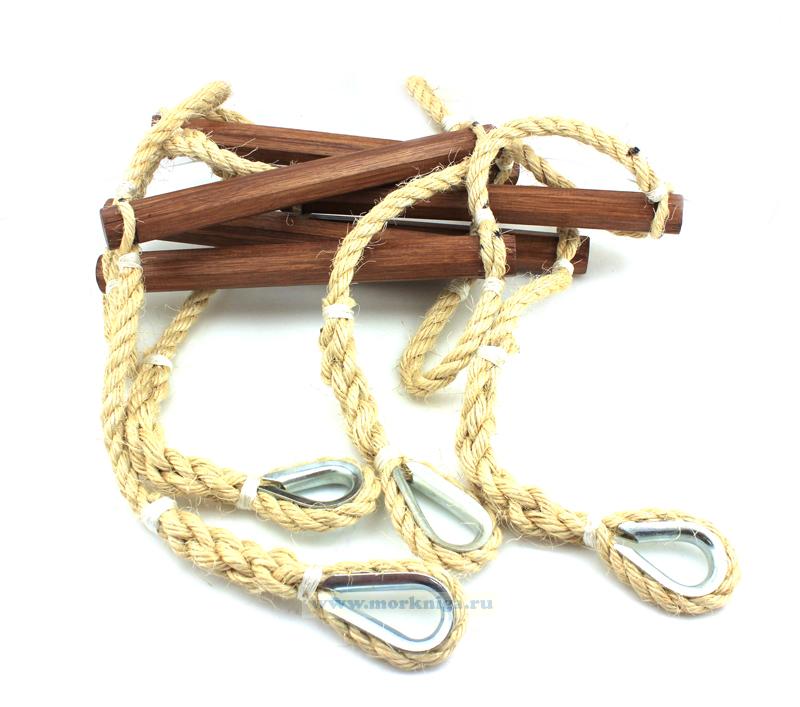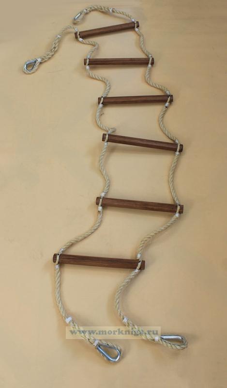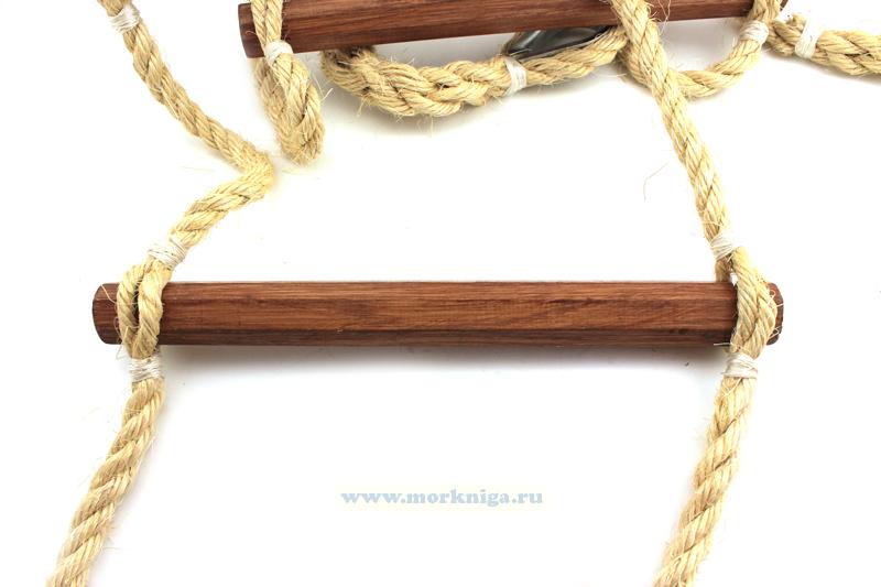 Расстояние между балясинами должно быть не больше 30 см. На верхних концах тетивы делаются огоны с коушами для закрепления шторм-трапа на борту с помощью скоб или храпцов.