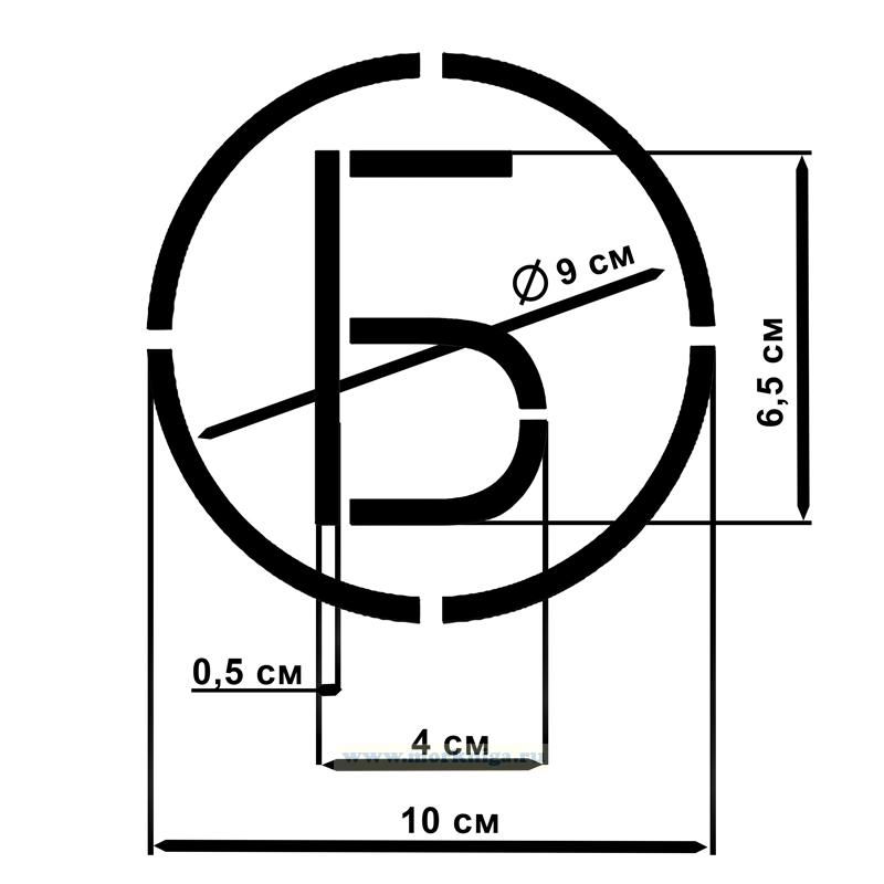 Трафарет применяется для маркировки горловин, дверей и люков, ведущих в погреба с боезапасами, в помещения для хранения взрывчатых веществ, легкого топлива, ангары, гаражи, аккумуляторные помещения, а также в помещения со сжатыми (сжиженными) газами. Горловины с буквой "Б" должны быть всегда задраены и при отсутствии людей в этих помещениях заперты на замок и опечатаны. Цвет букв и колец темно-синий