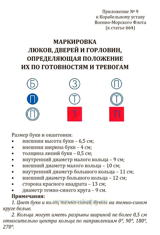 Маркировка осуществляется в соответствии с Приложением № 9 к Корабельному уставу Военно-Морского Флота (к статье 664)