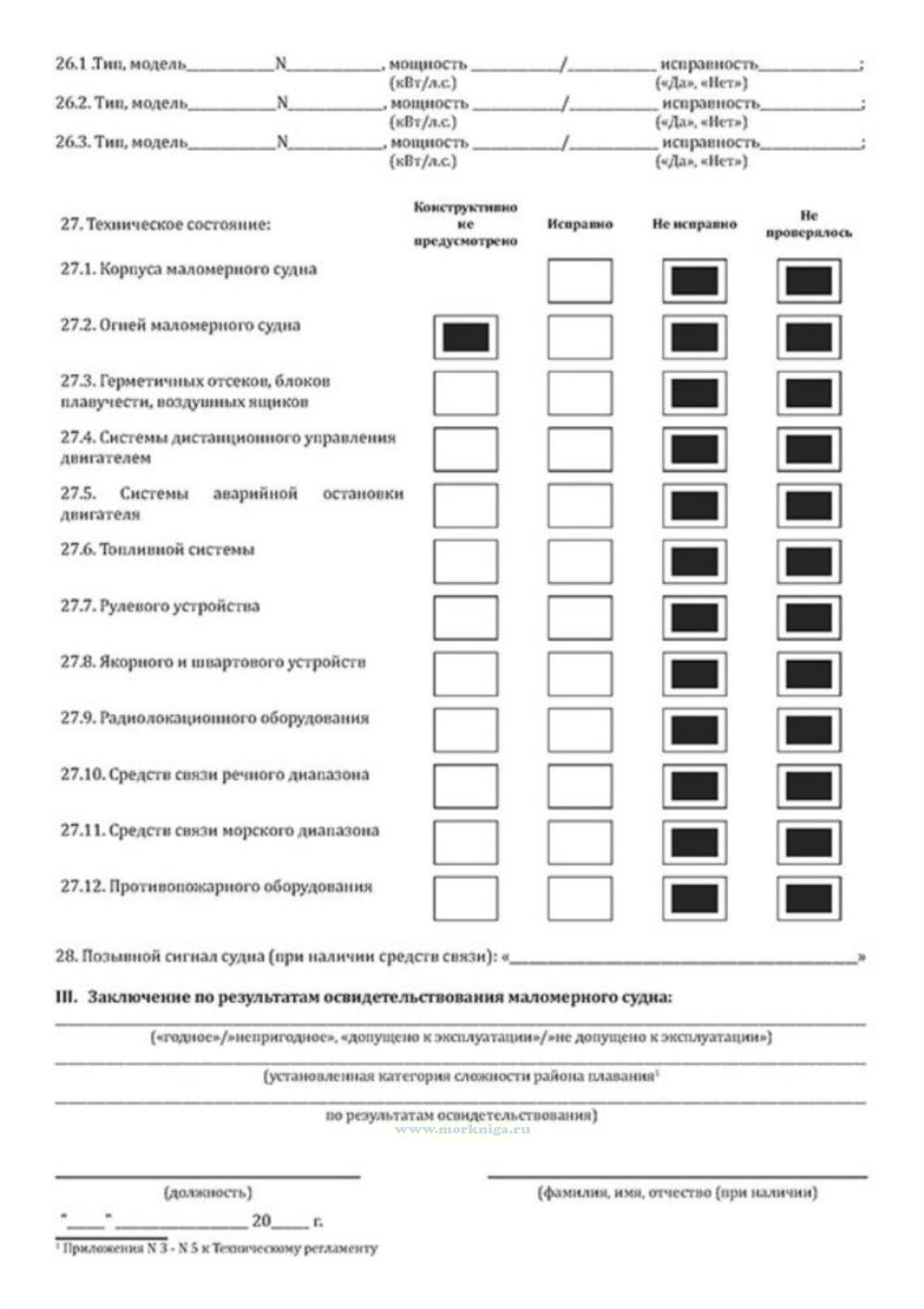 III. Заключение по результатам освидетельствования маломерного судна.