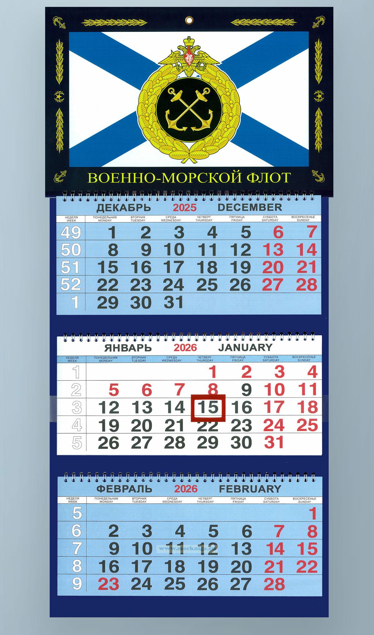 Календарь квартальный "Военно-Морской Флот" на 2026 год (Адмирал Ушаков, Адмирал Кузнецов) (730 руб.)