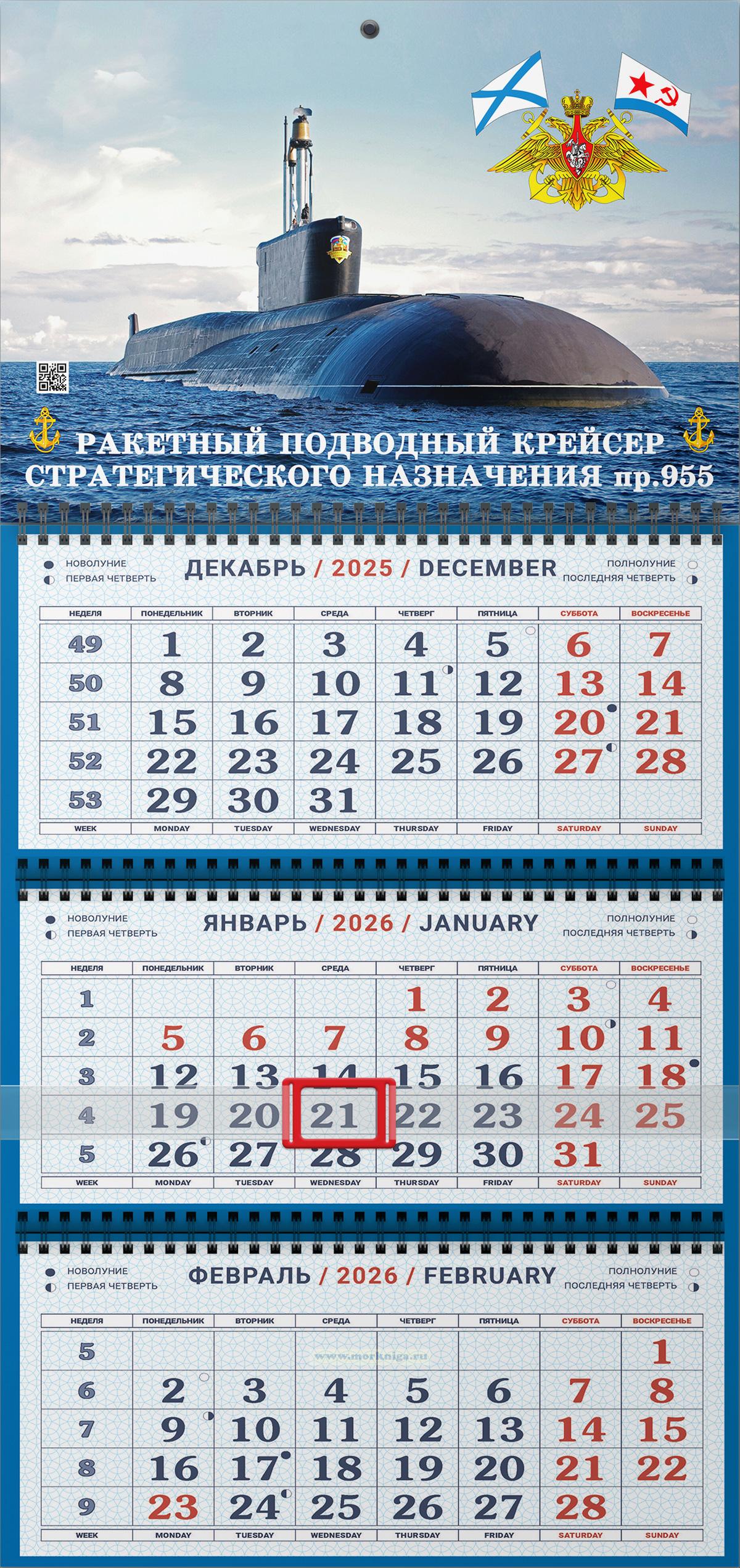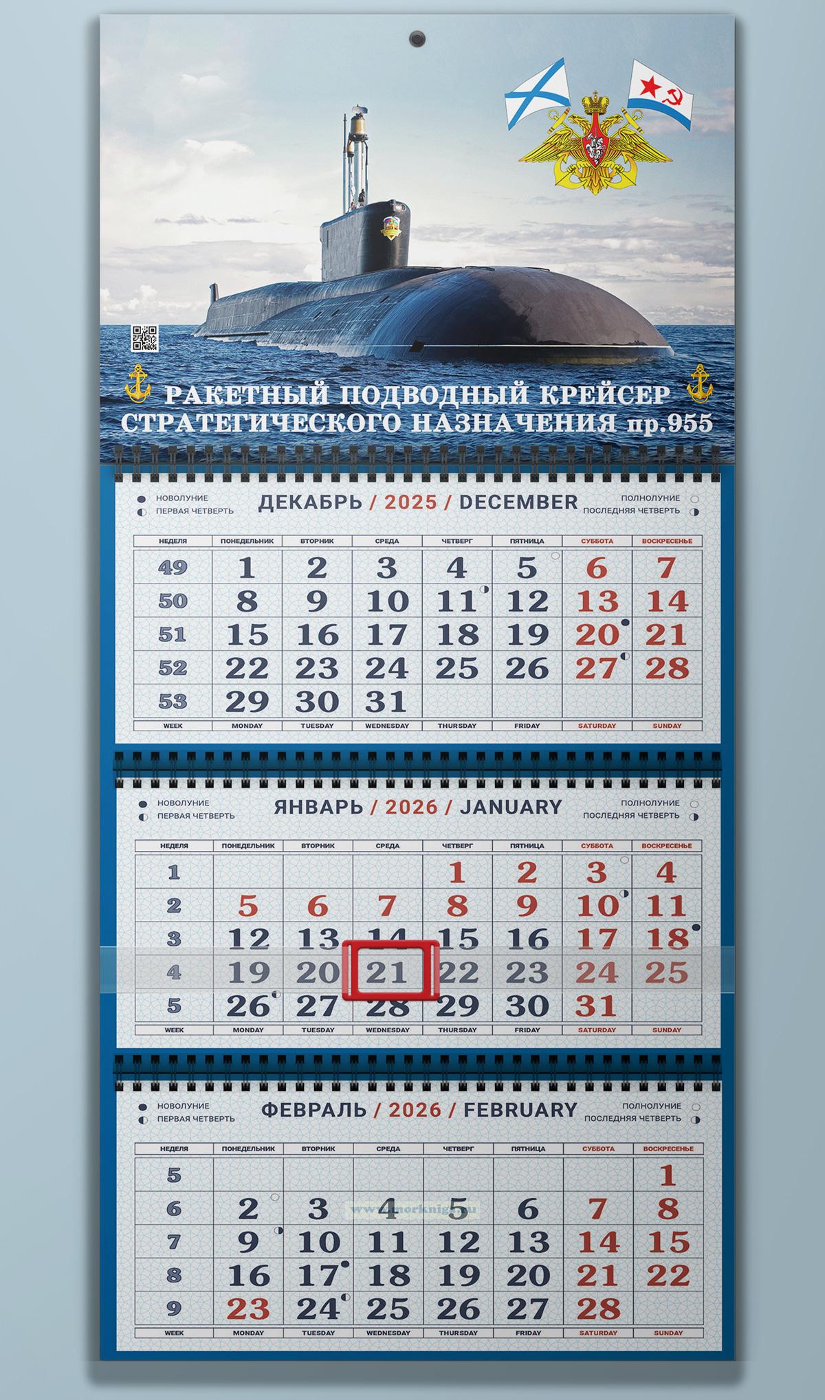 Календарь квартальный "Военно-Морской Флот" на 2026 год (РПКСН пр.955, вар.2) (730 руб.)