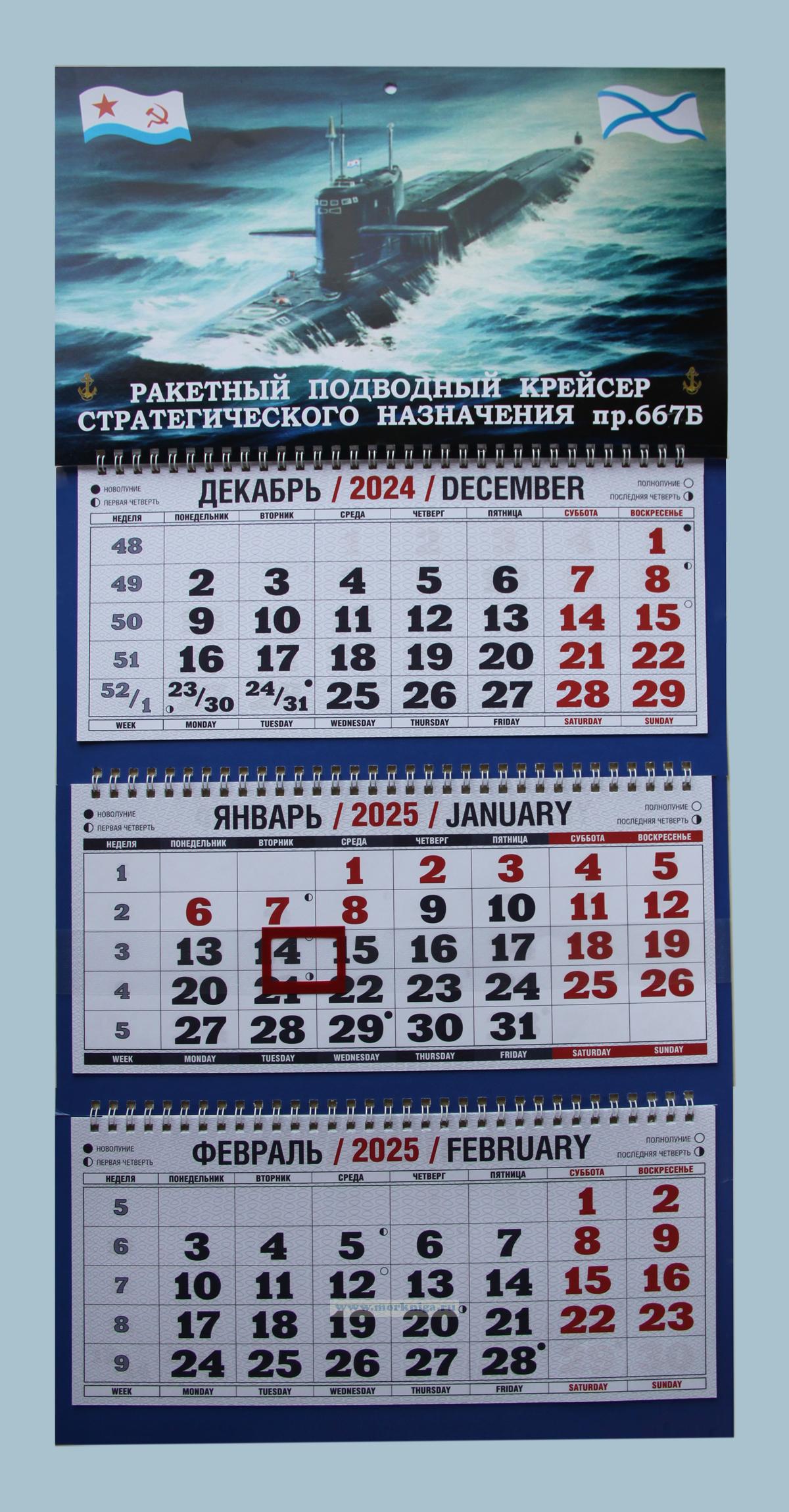 Календарь квартальный "Ракетный подводный крейсер стратегического назначения пр.667 БДР" на 2025 год (320 руб.)