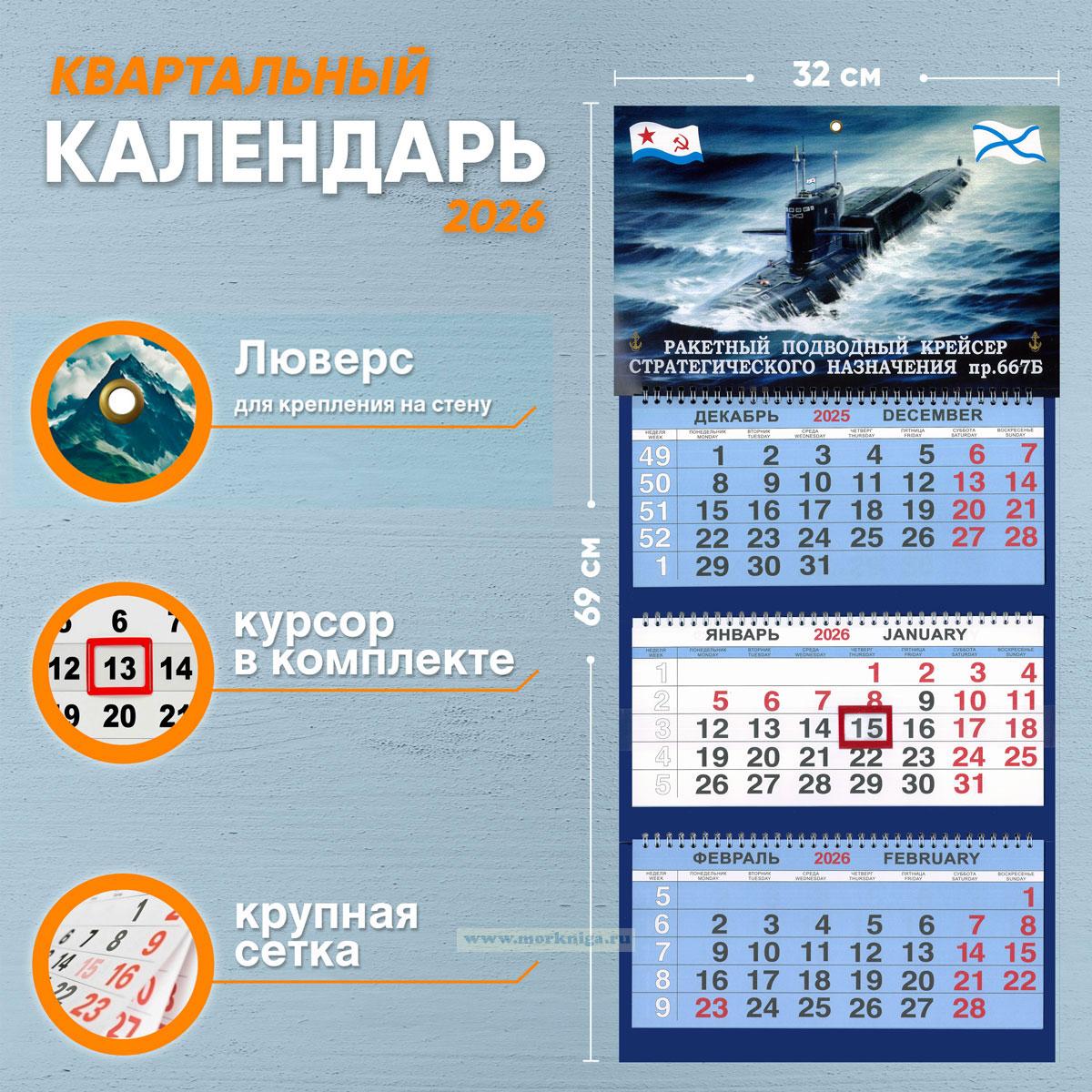 Календарь квартальный "Военно-Морской Флот" на 2026 год (РПКСН пр. 667Б)