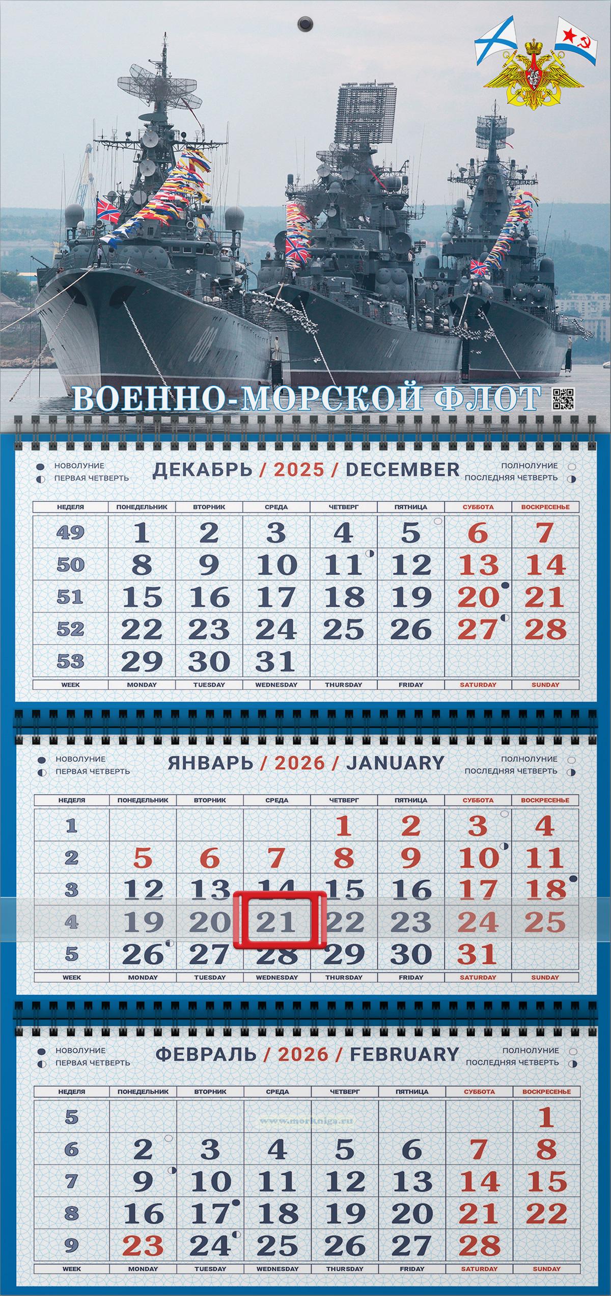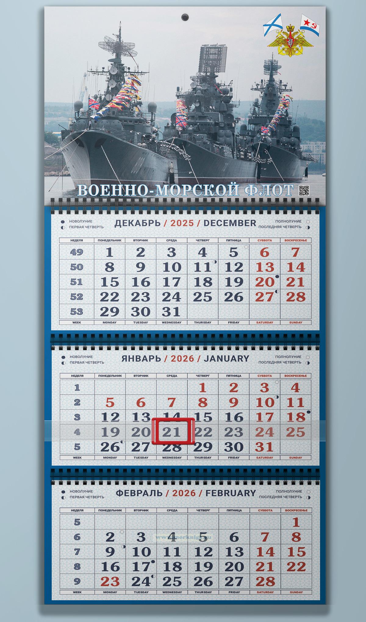 Календарь квартальный "Военно-Морской Флот" на 2026 год (Андреевский флаг с большой эмблемой ВМФ) (400 руб.)