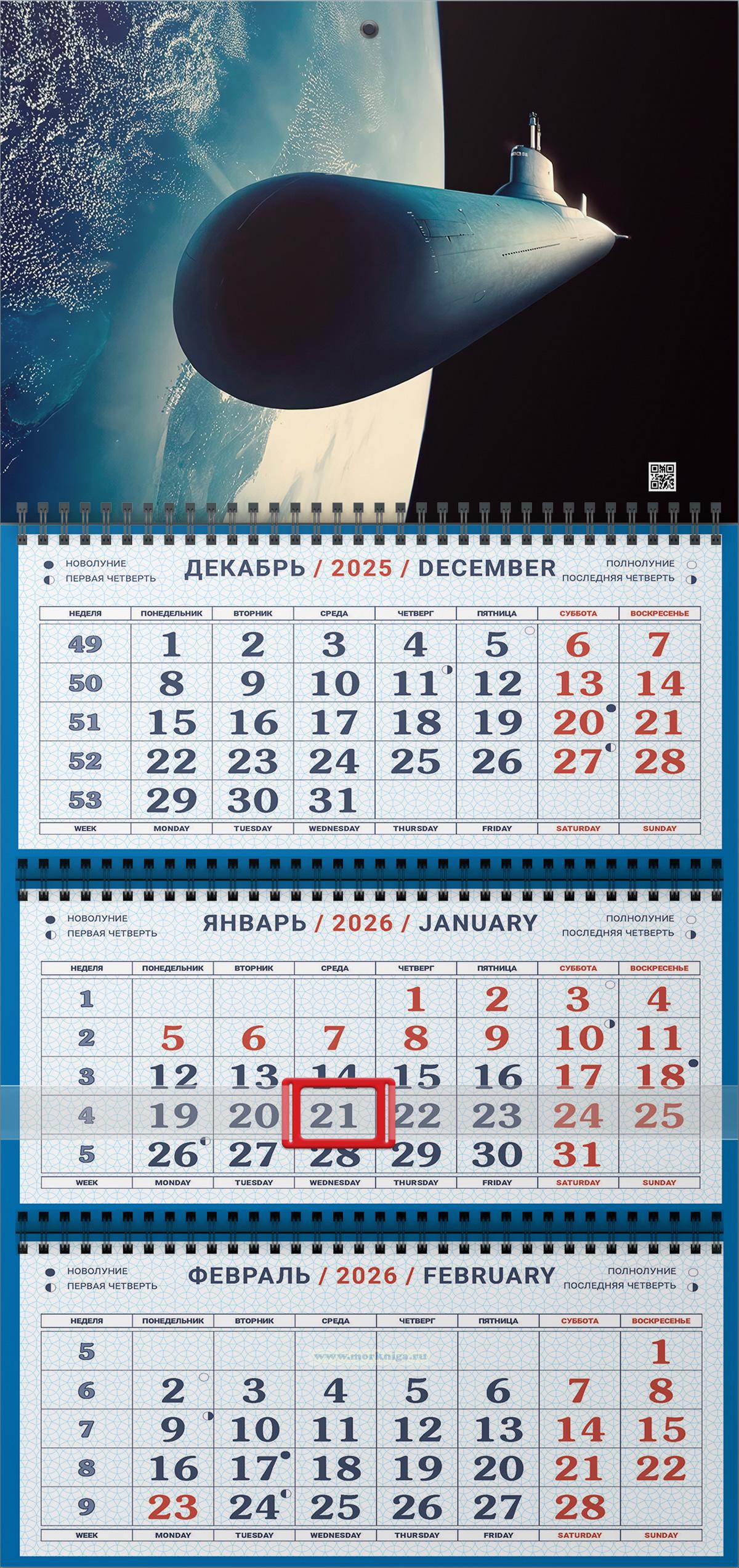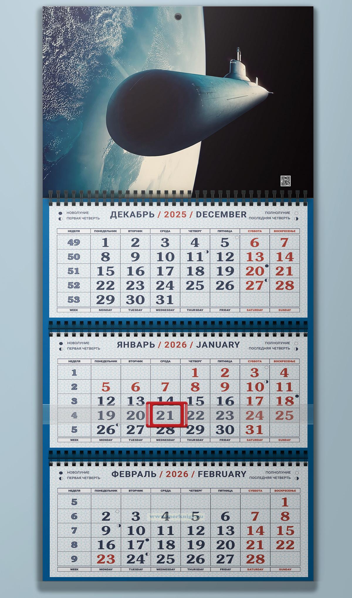 Календарь квартальный "Военно-Морской Флот" на 2026 год (ТРПКСН пр. 941) (400 руб.)